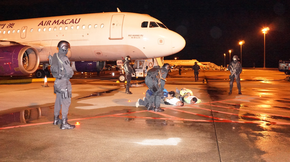 O exercício anual de segurança “Sequestro de uma aeronave” teve lugar no Aeroporto Internacional de Macau na madrugada de 24 de Julho de 2013. Para o efeito, foi simulado um cenário em que um grupo político exterior que já tinha levado a efeito diversos ataques terroristas no seu próprio país, protagonizou o desvio de uma aeronave transportando 54 passageiros e 10 tripulantes e requereu a aterragem no Aeroporto Internacional de Macau. O plano de emergência de resposta ao incidente criado foi imediatamente activado, para libertar passageiros e tripulantes, após a intervenção das forças de segurança.