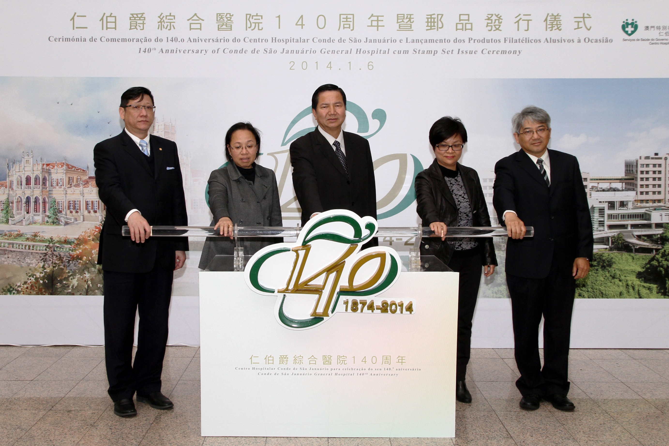 O Centro Hospitalar Conde de São Januário realizou hoje (dia 6 de Janeiro) a cerimónia de comemoração do 140.o aniversário do Centro Hospitalar Conde de São Januário e lançamento dos produtos filatélicos alusivos à ocasião. A cerimónia de iluminação foi presidida pelo Secretário para os Assuntos Sociais de Cultura, Dr. Cheong U, Chefe do Gabinete de Secretário para os Assuntos Sociais de Cultura, subst.a, Dr.a Maria Leong Madalena, Director dos Serviços de Saúde, Dr. Lei Chin Ion, Directora da Direcção dos Serviços de Correios, Dr.a Lau Wai Meng e o Director do Centro Hospitalar Conde de São Januário, Dr. Chan Wai Sin. O Dr. Lei Chin Ion e a Dr.a Lao Wai Meng ofereceram os produtos filatélicos alusivos à comemoração do 140.o aniversário do Centro Hospitalar Conde de São Januário. O Secretário para os Assuntos Sociais de Cultura, Dr. Cheong U, também ouviu a apresentação a respeito dos resultados das acções médicas com sucesso efectuadas pelo Centro Hospitalar Conde de São Januário nos últimos anos.