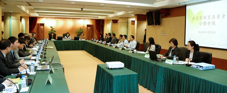 Realizou-se no passado dia 24 de Março, no Salão de Conferências Confúcio, no 1.º andar da Direcção dos Serviços de Educação e Juventude (DSEJ), a 1.ª reunião plenária do Conselho de Educação para o Ensino Não Superior, no ano lectivo de 2014, dirigida pela vice- presidente do Conselho, directora da DSEJ, Leong Lai, que se debruçou sobre os seguintes pontos: Apresentação do documento da segunda fase da consulta do anteprojecto do “Estatuto das Escolas Particulares”, da sugestão sobre o calendário do “Quadro Curricular da Educação Regular”, das sugestões para actualização dos vários subsídios no ano lectivo de 2014/2015 e dos trabalhos relativos à educação para pais.