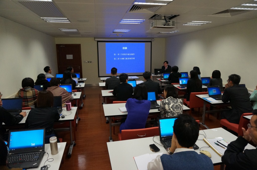 Para incrementar a eficiência e a precisão dos trabalhos de auditoria financeira, o Comissariado da Auditoria (CA) da Região Administrativa Especial de Macau e o Centro de Tecnologia Informática (CTI) do Gabinete de Auditoria Nacional (GAN) assinaram em 2011 um protocolo de cooperação para desenvolverem em conjunto o Programa Informático de Auditoria in loco (edição de Macau). Os trabalhos de concepção e desenvolvimento decorreram em duas fases e, realizados os necessários testes e ajustamentos, o CA recebeu no ano passado o programa e aplicou-o extensivamente na auditoria às contas. Para que o pessoal do CA pudesse conhecer mais aprofundadamente as funcionalidades do programa e, ao mesmo tempo, ganhar maior confiança no seu manuseamento, o CA convidou o chefe do CTI, Yang Yunyi, o chefe de divisão Sun Zhonghe, bem como o engenheiro Wang Shuai, que acompanhou todo o processo de desenvolvimento, para ministrarem a acção de formação “Funcionalidades do Programa Informático de Auditoria in loco (aprofundamento)”, cujo programa incidia essencialmente sobre o manuseamento prático das diversas funcionalidades do programa e na aplicação das técnicas para a manutenção do mesmo.