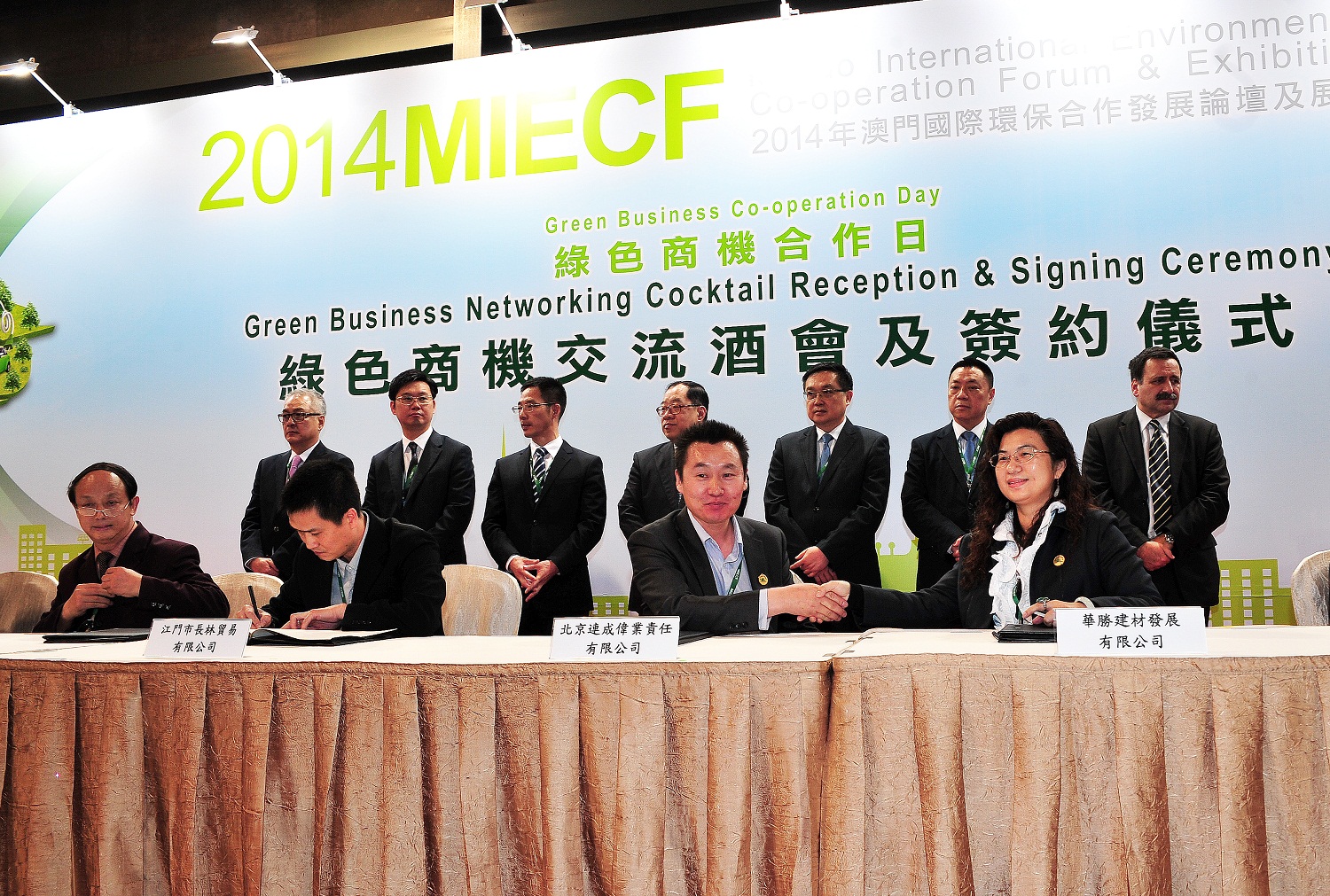 No primeiro dia do Fórum e Exposição Internacional de Cooperação Internacional 2014 (2014MIECF), foram realizadas um total de 356 sessões de bolsas de contacto verde, além de três sessões de intercâmbio na área ambiental, que contou com a participação de 11 entidades.