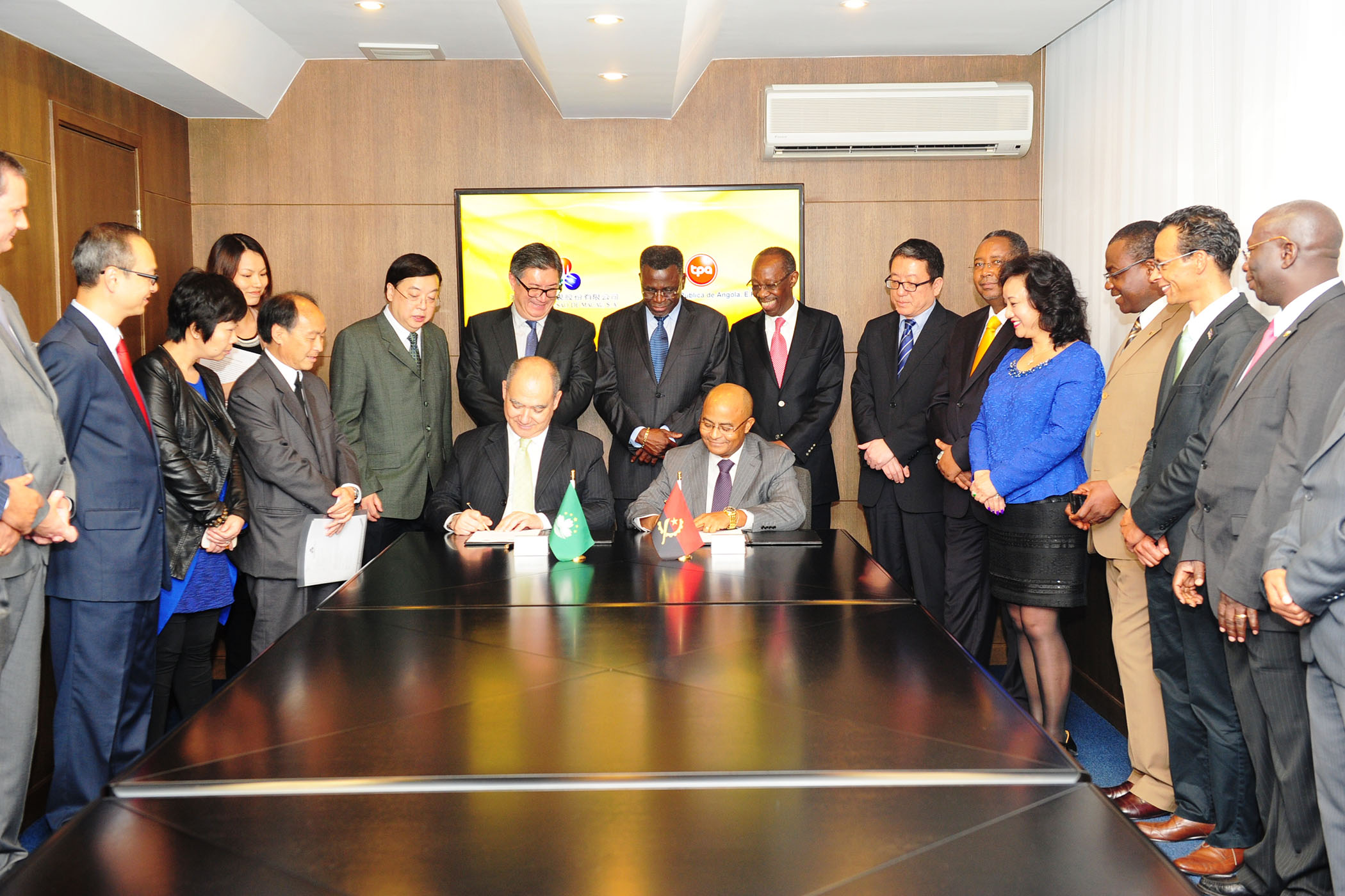 O Acordo foi rubricado entre o Presidente da Comissão Executiva da TDM, Dr. Manuel Gonçalves Pires Júnior e o Administrador da Televisão Pública de Angola, E.P., Dr. Manuel António da Silva, e contou com a presença do Senhor Embaixador de Angola, Dr. João Garcia Bires, do Senhor Director da Direcção Ásia Oceânia do Ministério das Relações Exteriores de Angola, Embaixador André Panzo, do Cônsul-Geral de Angola na RAEM, Dr. Pedro da Silva Feijó Sobrinho, do Secretário-Geral, Dr. Chang Hexi, do Secretário-Geral Adjunto (em representação dos Países de Língua Portuguesa), Dr. Marcelo d’Almeida, da Secretária-Geral Adjunta (em representação do Governo da RAEM), Dra. Rita Santos, e dos Delegados junto do Secretariado Permanente de Angola, Dr. Joaquim Gama, de Cabo Verde, Dr. Mário Vicente, da Guiné-Bissau, Eng. Malam Camará e de Timor-Leste, Dr. Cornélio Ferreira.