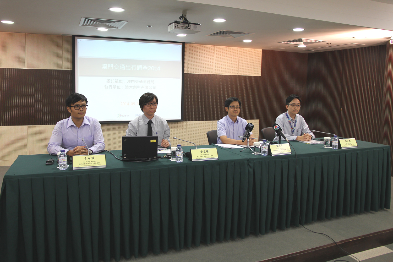 Na conferência de imprensa que teve lugar hoje (dia 5) no Salão de Múltiplos Propósitos da DSAT, foi apresentado o inquérito pelo chefe do Departamento de Planeamento e Desenvolvimento de Tráfego da DSAT, Kuong Vai Cheok, pelo chefe da Divisão de Planeamento de Tráfego da DSAT, Sio Iat Pang, pelo director de projecto da UMTEC Limitada, Wong Ka Io e pelo gerente de projecto da UMTEC Limitada, Ku Weng Keong.