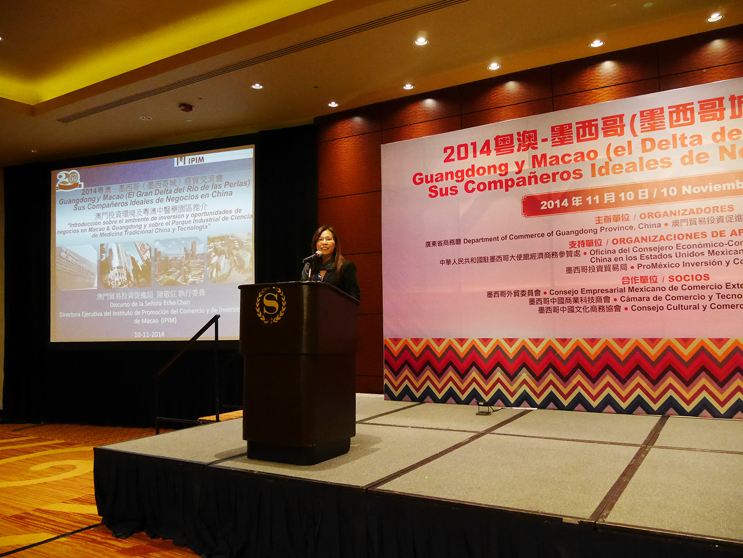 Com vista a promover o intercâmbio e a cooperação económica e comercial entre a Província de Guangdong, Macau e o México, o Instituto de Promoção do Comércio e do Investimento de Macau (IPIM) e os Serviços do Comércio da Província de Guangdong organizaram em conjunto, no dia 10 de Novembro de 2014, no Sheraton Maria Isabel Hotel & Towers, sito na Cidade do México, o “Seminário de Intercâmbio Económico e Comercial entre Guangdong, Macau e México (Cidade do México) 2014”.