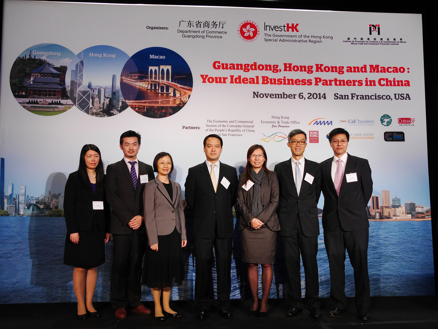 Intervieram como palestrantes nos dois seminários de promoção, entre outros, o Conselheiro Económico e Comercial do Consulado-Geral da República Popular da China em Vancouver, Yu Shanjun, o Conselheiro Económico e Comercial do Consulado-Geral da República Popular da China em San Francisco, Xia Xiang, o Director dos Serviços do Comércio Justo e cumulativamente Chefe da Divisão de Promoção do Comércio da Província de Guangdong, Yu Jinfu, o Director Associado de Invest Hong Kong, Francis Ho, o “Minister of International Trade” da Província de British Columbia, Teresa Wat, a Directora do “Hong Kong Economic and Trade Office in Toronto”, Gloria Lo, e a Directora do “Hong Kong Economic and Trade Office in San Francisco, Subrina Chow Shun Yee.