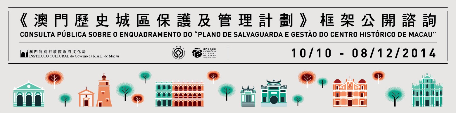 A fim de recolher amplamente as opiniões da população e beneficiar da discussão mútua, o Instituto Cultural realiza as Sessões de Consulta Pública sobre o enquadramento do “Plano de Salvaguarda e Gestão do Centro Histórico de Macau”, apresentando ao público o conteúdo do texto submetido a consulta. A primeira e a segunda sessões realizaram-se no dia 25 e 26 de Outubro, respectivamente. A terceira e quarta sessões irão realizar-se no dia 22 e 23 de Novembro pelas 15:00 horas, no Museu Macau. A quarta sessão terá interpretação simultânea em português.