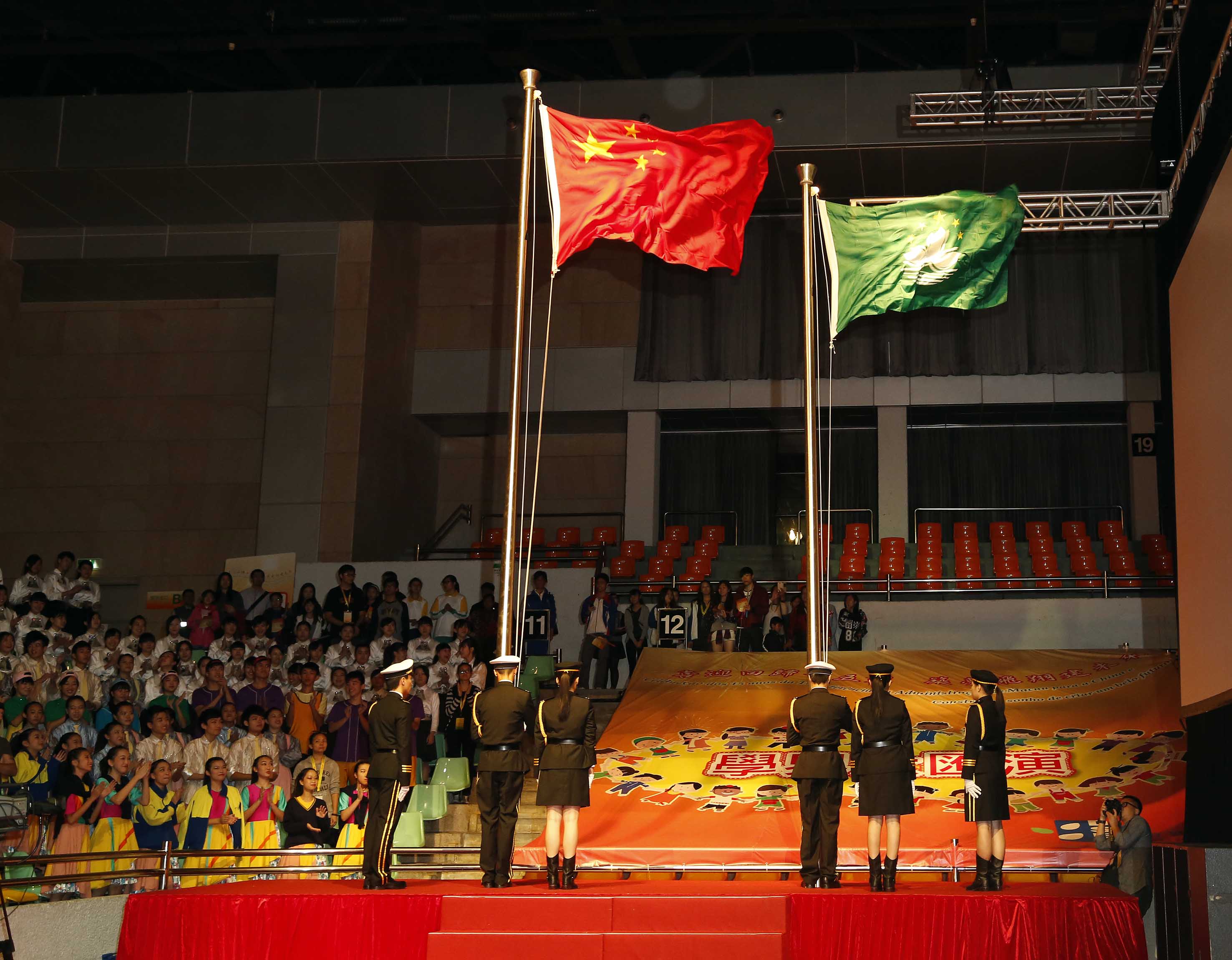 Antes do espectáculo e na presença dos muitos convidados foi realizada uma simples mas solene cerimónia do hastear da bandeira que deu início ao espectáculo. Para expressar a felicidade pelo 15.º Aniversário do Regresso de Macau à Pátria, a DSEJ convidou 1.999 alunos de Macau, do ensino secundário, nascidos em 1999, para participarem na criação de uma obra de arte de grande dimensão, medindo 10m x 1,5m, composta pelas fotografias dos seus sorrisos, que foi exposta no átrio principal do Fórum de Macau na mesma noite, de forma a expressar, através dos sorrisos brilhantes dos alunos, a alegria do 15.º Aniversário do Regresso de Macau à Pátria e, ao mesmo tempo, o profundo agradecimento ao Governo Popular Central pela sua solidariedade e apoio à RAEM.