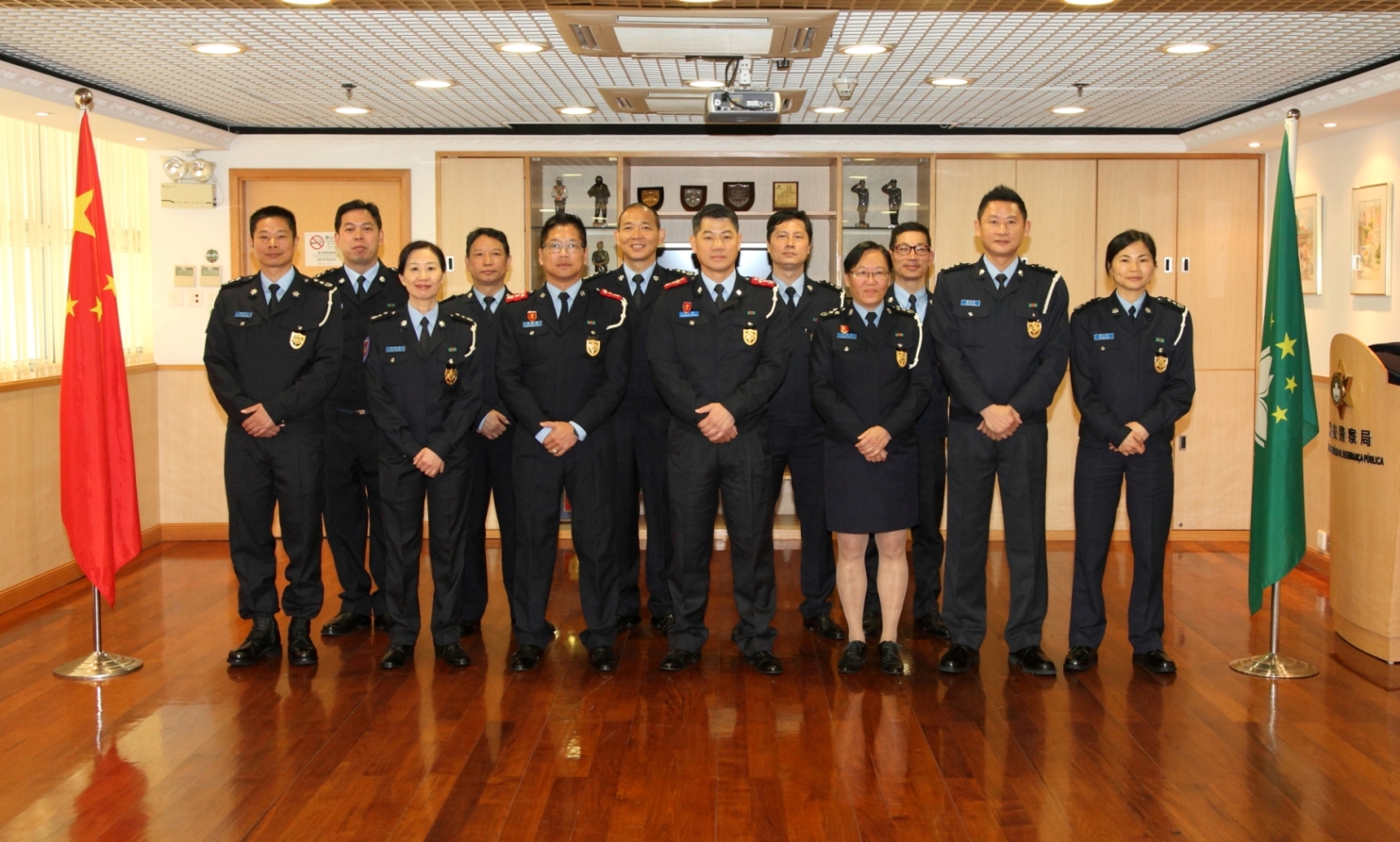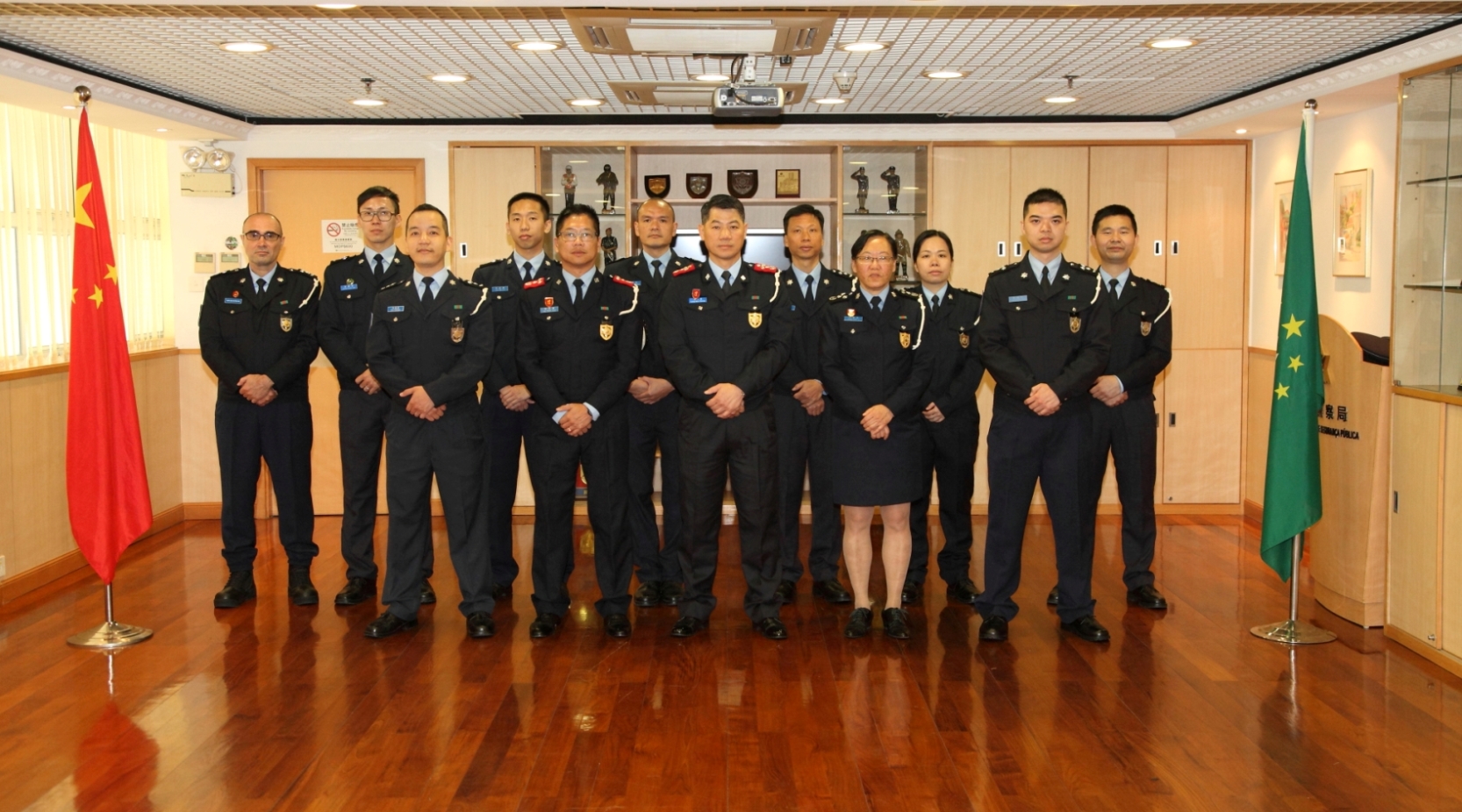 Hoje, dia 2 de Janeiro de 2015, pelas 12H00, teve lugar na Sala de Honra do Comando do Corpo de Polícia de Segurança Pública, a cerimónia de tomada de posse aos cargos de Intendente, Subintendente e Comissário na qual foi presidido pelo Comandante do CPSP, Superintendente Geral Leong Man Cheong, pelo 2.° Comandante, Superintendente Lai Kam Kun, estiveram presentes na cerimónia, as chefias e responsáveis de vários Departamentos desta Polícia.