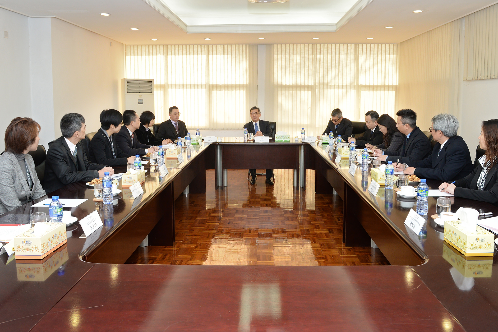 A chefe do GSS, Cheong Ioc Ieng e os assessores do mesmo gabinete acampanharam também a visita.
