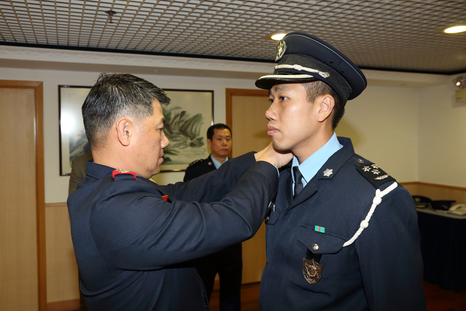 Hoje, dia 8 de Abril de 2015, pelas 12H00, teve lugar no Comando do Corpo de Polícia de Segurança Pública, a cerimónia de promoção ao posto de comissário de Lao Kun Seng. A cerimónia foi presidida pelos Exm.os Comandante do CPSP, Superintendente Geral Leong Man Cheong, 2.ª Comandante Subst.ª, Intendente Ung Vong Pek Io, e 2.º Comandante Subst.º, Intendente Chan Man Tak, e contou ainda com a presença das chefias do Departamento Policial das Ilhas e do Departamento de Operações, que deram os parabéns ao oficial promovido.