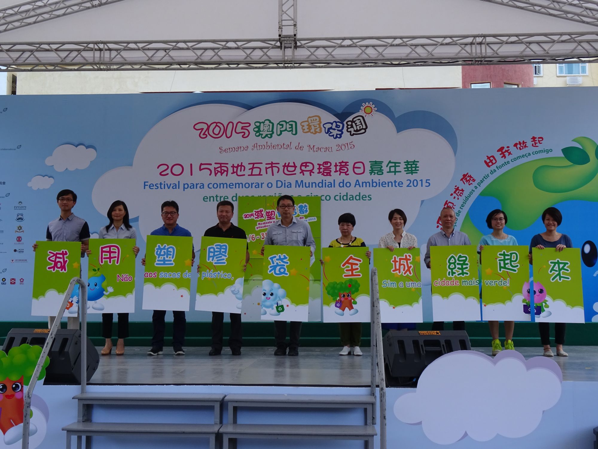O “Festival comemorativo do Dia Mundial do Ambiente entre duas Regiões e cinco Cidades 2015” continua a obter o apoio dos diversos Serviços Públicos, associações sociais e entidades privadas de Macau, tendo movimentado a participação das forças verdes de diversas camadas sociais de Macau, tornando, deste modo, a actividade mais significativa. Foram convidados diversos serviços públicos e associações como entidades co-organizadoras: Instituto para os Assuntos Cívicos e Municipais, Direcção dos Serviços para os Assuntos de Tráfego, Gabinete para as Infra-estruturas de Transportes, Direcção dos Serviços Meteorológicos e Geofísicos, Gabinete para o Desenvolvimento do Sector Energético, Direcção dos Serviços de Assuntos Marítimos e de Água, Direcção dos Serviços de Educação e Juventude, Conselho de Consumidores, Corpo de Polícia de Segurança Pública, Centro de Produtividade e Transferência de Tecnologia de Macau, União Geral das Associações dos Moradores de Macau, Federação das Associações dos Operários de Macau, Associação Geral das Mulheres de Macau, Aliança de Povo de Instituição de Macau, Cáritas de Macau, Associação Exército de Salvação (Macau), Associação de Nova Juventude Chinesa de Macau e, Associação Geral de Estudantes Chong Wa de Macau; foram convidadas como entidades de apoio: Associação dos Escoteiros de Macau, Cruz Vermelha de Macau, Companhia de Telecomunicações de Macau, S.A.R.L., Transmac - Transportes Urbanos de Macau, S.A.R.L., Sociedade de Transportes Colectivos de Macau, S.A.R.L. e, Macau Nova Era de Autocarros Públicos , SA.