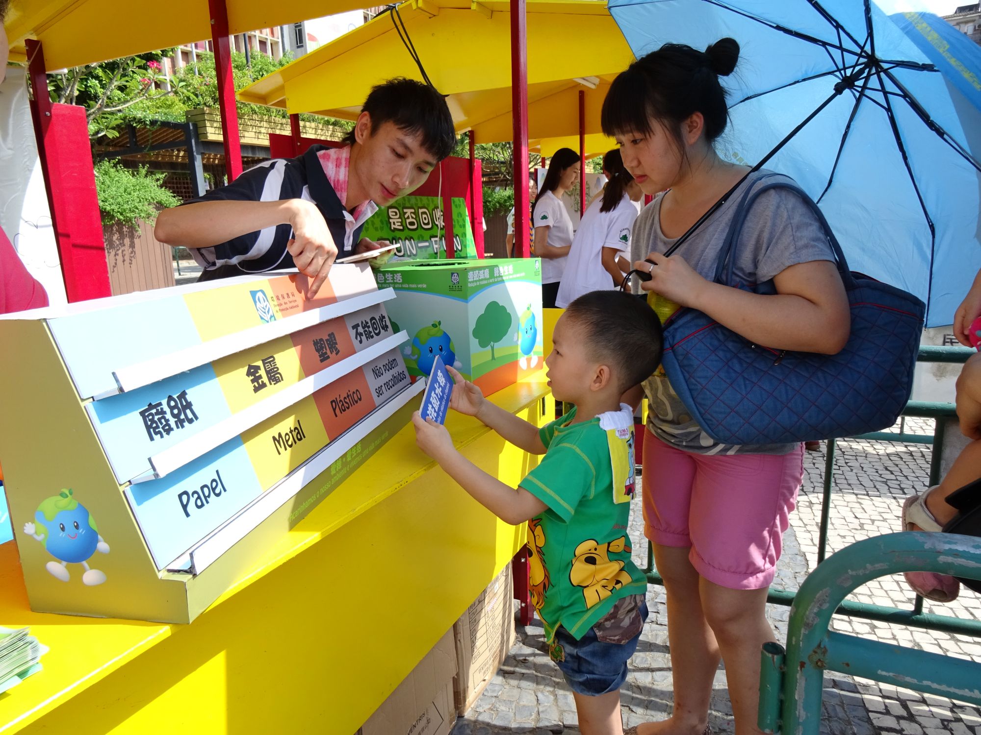 O “Festival comemorativo do Dia Mundial do Ambiente entre duas Regiões e cinco Cidades 2015” é um evento com diversas actividades para assinalar o desfecho da Semana Ambiental de Macau 2015, tendo sido organizados mais de dez tipos de jogos de tendinhas destinados aos pais e filhos e workshops relativos à protecção ambiental, bem como espectáculos e actividades de palco, incluindo danças por crianças e canções apresentadas pelo cantor Sean Pang. Durante o evento, a DSPA para além de atribuir louvores aos trabalhadores como reconhecimento do bom desempenho na equipa de trabalho de“fãs ambientais” na linha da frente do Programa de Pontos “Verdes”, lançou também a campanha “Reduzir o uso de sacos de plástico poderá dar prémios 2015”, que já constituí uma plataforma eficaz, permitindo sensibilizar os proprietários das lojas e o público para pôr em prática o conceito de“Redução de resíduos” na vida quotidiana, contribuindo, conjuntamente, para obter bons resultados na “Redução de resíduos”. Além disso, as quatro mascotes da DSPA, o “Sr. Planeta”, a“Sr.ª Árvore”, o“Mano Nuvem” e a“Mana Flor”que têm como missão sensibilizar e transmitir a mensagem de protecção ambiental, divertiram o público durante o evento, partilhando a alegria no âmbito de protecção ambiental.