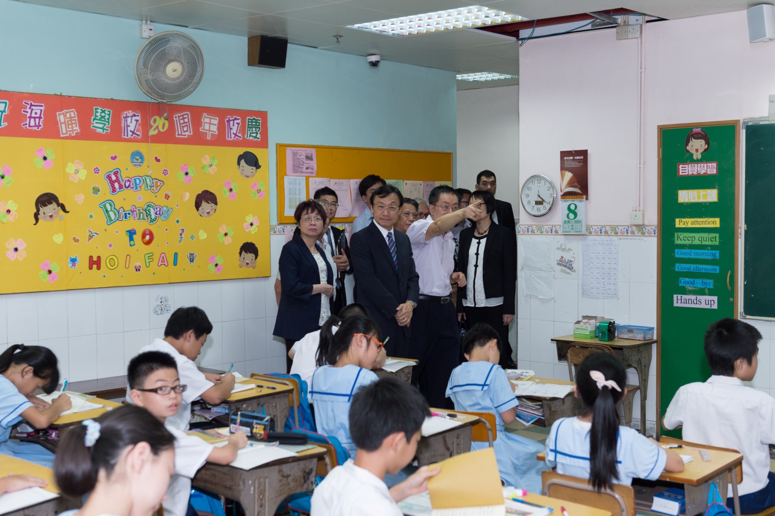 O Secretário para os Assuntos Sociais e Cultura visitou, ainda, a Escola Hói Fai, a qual apresentou várias dificuldades no desenvolvimento das suas actividades educativas. Alexis Tam sugeriu à escola para recorrer ao Fundo de Desenvolvimento Educativo no sentido de obter apoio financeiro para reconstruir, neste Verão, o edifício da escola e adquirir novas instalações de ensino, de modo a criar melhores condições para o desenvolvimento dos estudantes.