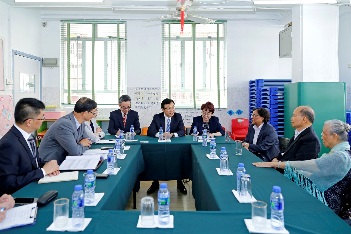 Na visita à Escola Tong Nam (ensino de Pré-Escolar e Primário), o Secretário e o presidente de direcção da Associação de Apoio à Escola Tong Nam de Macau, Chan U Ion, a directora da Escola, Chu Kam Fong, Sin Wai Hang e Lao Sin Peng recordaram o percurso histórico da criação da Escola, assim como trocaram opiniões sobre o desenvolvimento educativo do futuro.