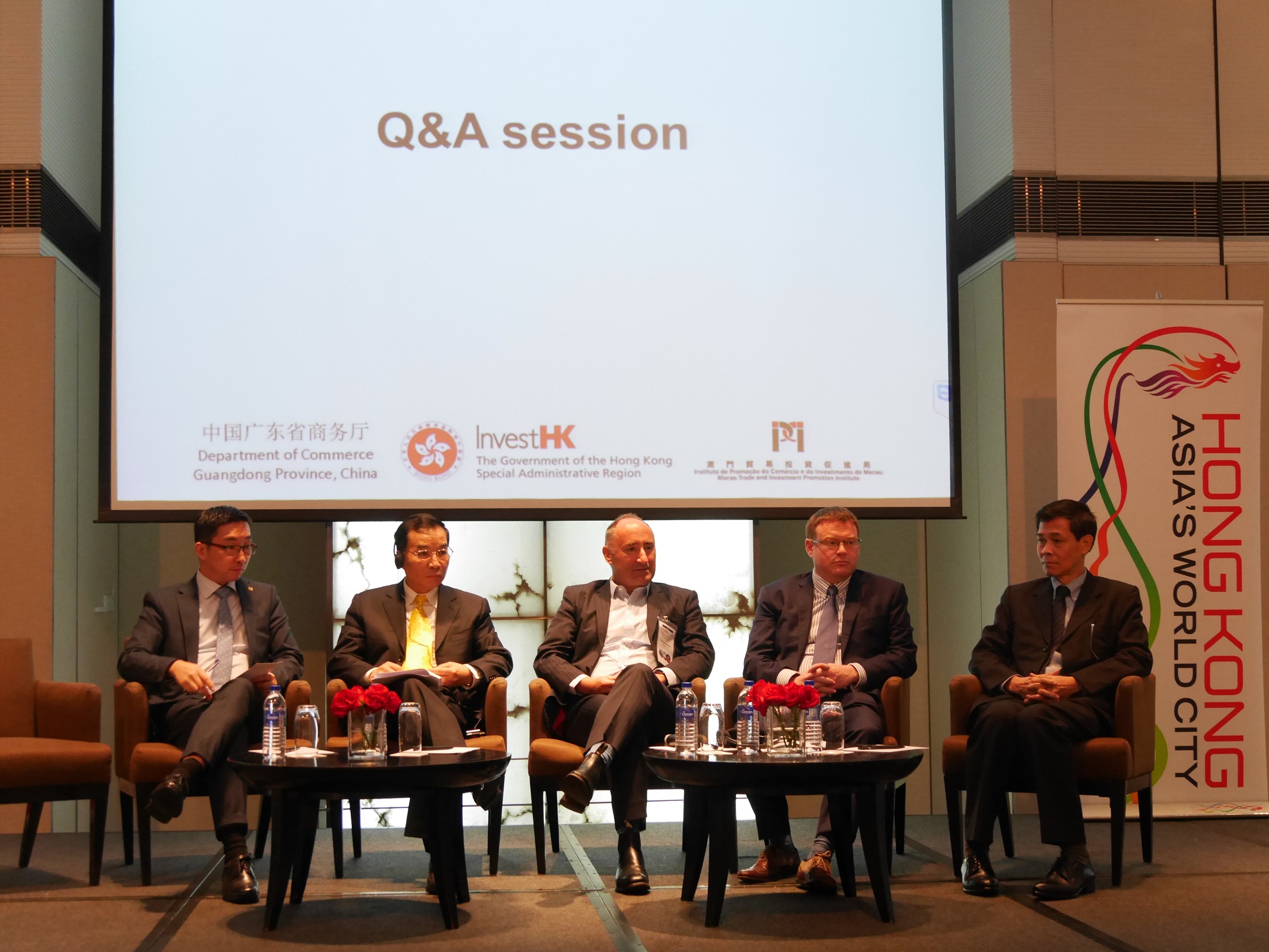 O Director-Geral da Promoção de Investimento do InvestHK, Dr. Simon Galpin, e o Director-Geral Adjunto do mesmo organismo, Dr. Francis Ho, destacaram as principais vantagens em investir em Hong Kong. Os dois dirigentes mostraram-se ainda convictos de que a estratégia “Uma Faixa, uma Rota” contribuirá para um alargamento da cooperação económica e comercial entre Hong Kong e os membros da Associação das Nações do Sudeste Asiático (ASEAN, na sigla inglesa).