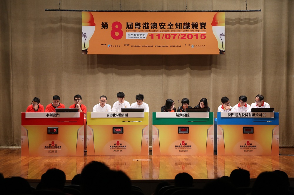 A “Competição de conhecimentos de segurança entre Cantão, Hong Kong e Macau” coorganizada pela Direcção dos Serviços para os Assuntos Laborais (DSAL), Administração Estatal para a Segurança no Trabalho da Província de Guangdong e o Hong Kong Occupational Safety and Health Council vai ser realizada em Novembro do corrente ano, em Cantão. Esta competição tem como objectivo o fortalecimento, através de jogos de perguntas de respostas, dos conhecimentos de segurança e saúde ocupacional dos trabalhadores ao serviço, de modo a prevenir a ocorrência de acidentes de trabalho e doenças profissionais. A fim de seleccionar as equipas para representar Macau nesta Competição, no dia 11 de Julho (sábado), a DSAL realizou, no auditório do Instituto Politécnico de Macau, a prova eliminatória de Macau para aquela Competição.