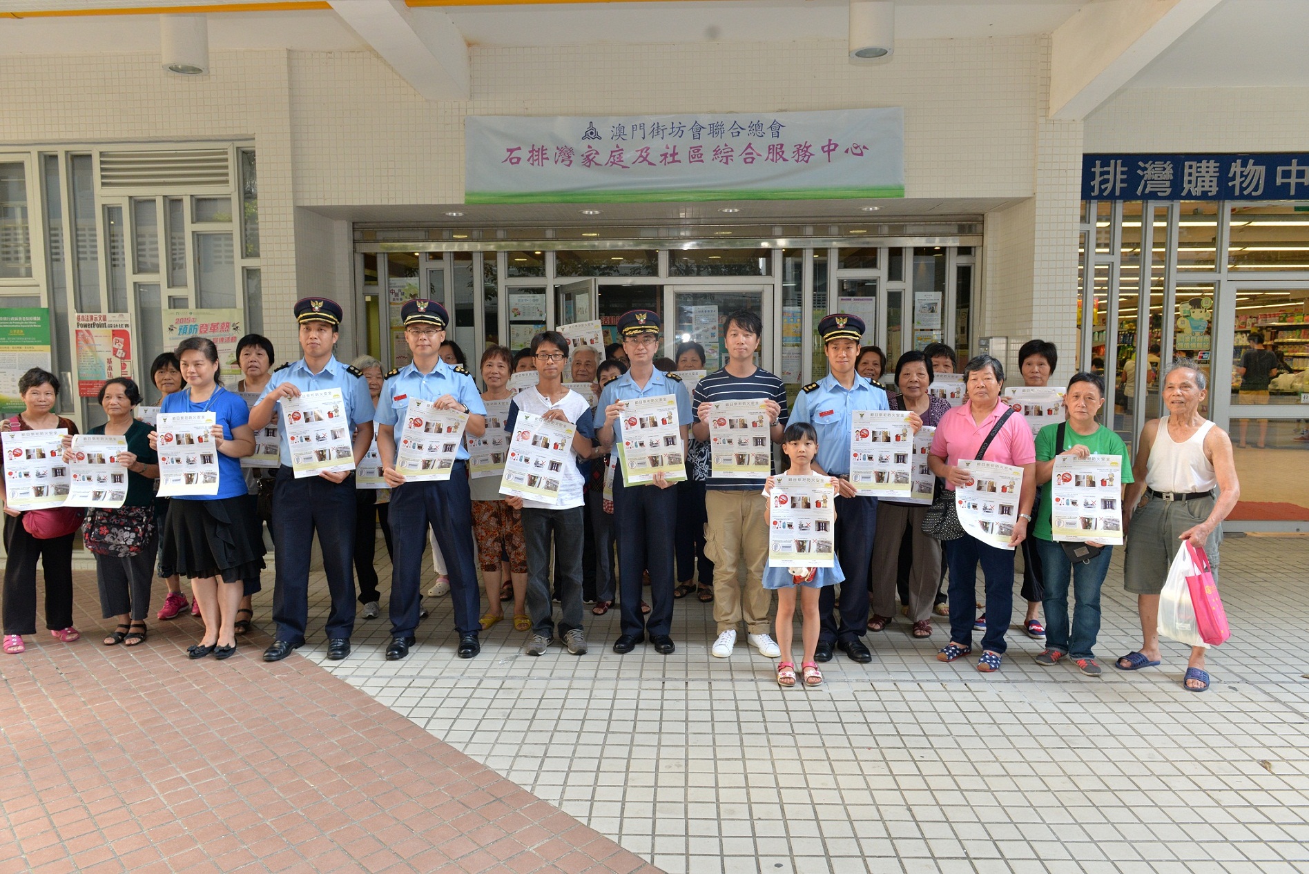As actividades são desenvolvidas entre 17 de Agosto e 4 de Setembro, sendo distribuídos folhetos e cartazes aos residentes, turistas e lojas, respectivamente nas zonas da Areia Preta, Portas do Cerco, Ilha Verde, Iao Hon, Patane, Fai Chi Kei, Seac Pai Van e Vila de Coloane. Para penetrar mais nas comunidades e auscultar melhor a população, os nossos oficiais visitaram, hoje (19 de Agosto), o Complexo de Serviços para a Família e Comunidade de Seac Pai Van da União Geral da Associação dos Moradores de Macau, durante a qual foram apresentadas as acções de sensibilização da prevenção contra incêndios na Festa dos Espíritos Esfomeados e respectivos trabalhos preparatórios, sendo também realizada uma palestra sobre o tema destinada aos membros da Associação. Posteriormente, os voluntários ajudaram a distribuir materiais promocionais na zona.
