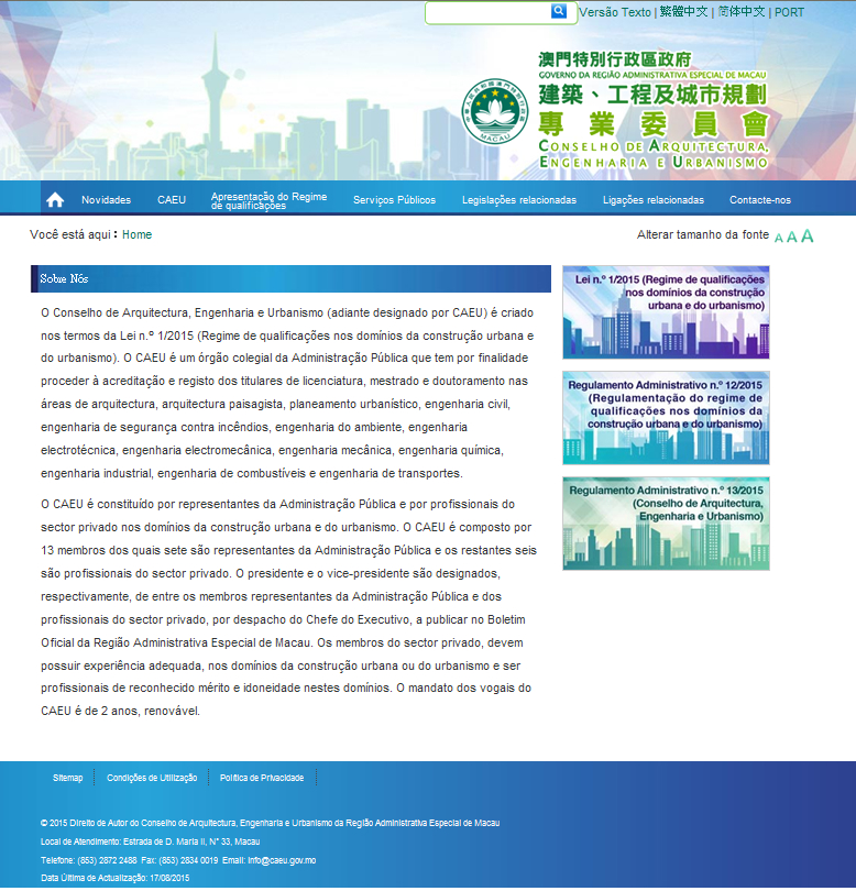• Entrada em funcionamento da página electrónica do Conselho de Arquitectura, Engenharia e Urbanismo