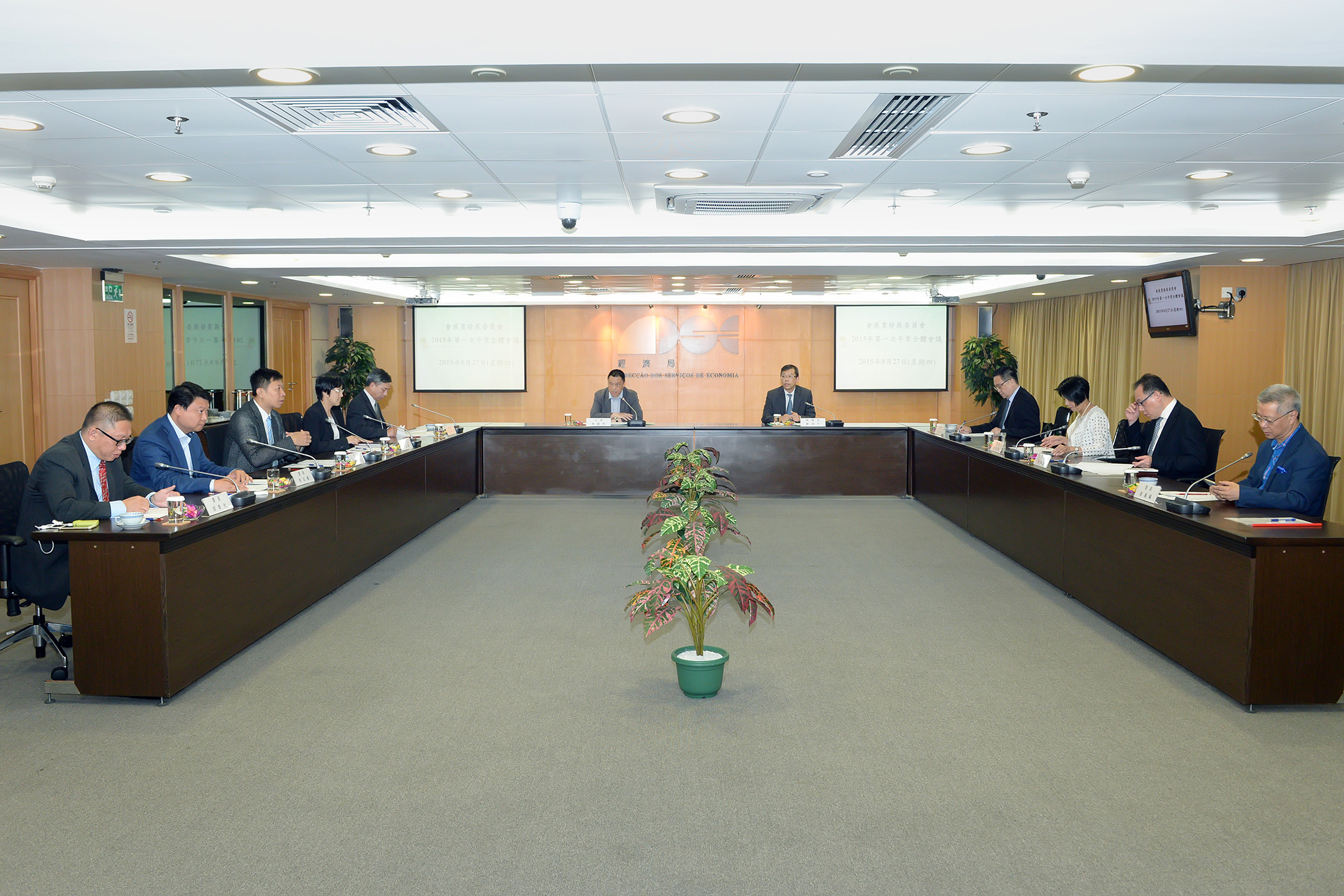 A primeira reunião plenária ordinária do corrente ano da Comissão para o Desenvolvimento de Convenções e Exposições (CDCE) teve lugar na tarde do dia 27 de Agosto de 2015, na Sala de Reunião no 7.º andar da Direcção dos Serviços de Economia (DSE). O Secretário para a Economia e Finanças, também presidente da CDCE, Dr. Leong Vai Tac, presidiu à reunião.