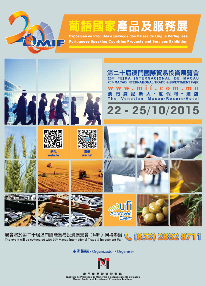 O Governo da Região Administrativa Especial de Macau, adiante designada abreviadamente por “RAEM” tem envidado esforços na construção de Macau como “Centro de Serviços Comerciais para as Pequenas e Médias Empresas da China e dos Países de Língua Portuguesa”, “Centro de Distribuição dos Produtos Alimentares dos Países de Língua Portuguesa” e “Centro de Convenções e Exposições para a Cooperação Económica e Comercial entre a China e os Países de Língua Portuguesa”, e com a entrada em funcionamento, no passado dia 1 de Abril, do “Portal para a Cooperação na Área Económica, Comercial e de Recursos Humanos entre a China e os Países de Língua Portuguesa” (adiante designado por “Portal de Informação”), as ligações online e offline foram intensificadas para impulsionar os trabalhos, dos quais, no âmbito dos serviços offline, na 20ª Feira Internacional de Macau (MIF) organizada pelo Instituto de Promoção do Comércio e do Investimento de Macau (IPIM), será instalado o “Pavilhão de Produtos e Serviços dos Países de Língua Portuguesa” (adiante designado por “Pavilhão de Serviços”), que visa a exposição dos produtos alimentares dos Países de Língua Portuguesa e serviços profissionais da China e dos Países de Língua Portuguesa, de uma forma diversificada e interactiva.