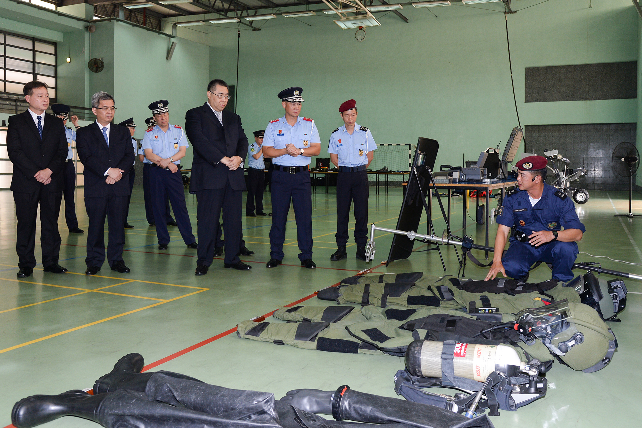 Participaram ainda nas visitas as seguintes individualidades: a chefe do Gabinete do Chefe do Executivo, O Lam, a chefe do Gabinete do Secretário para a Segurança, Cheong Ioc Ieng, e os assessores do Gabinete, Che Hio Hong e Leong Hou In, segundos-comandantes da PSP, Ng Kam Wa e Chan Man Tak.
