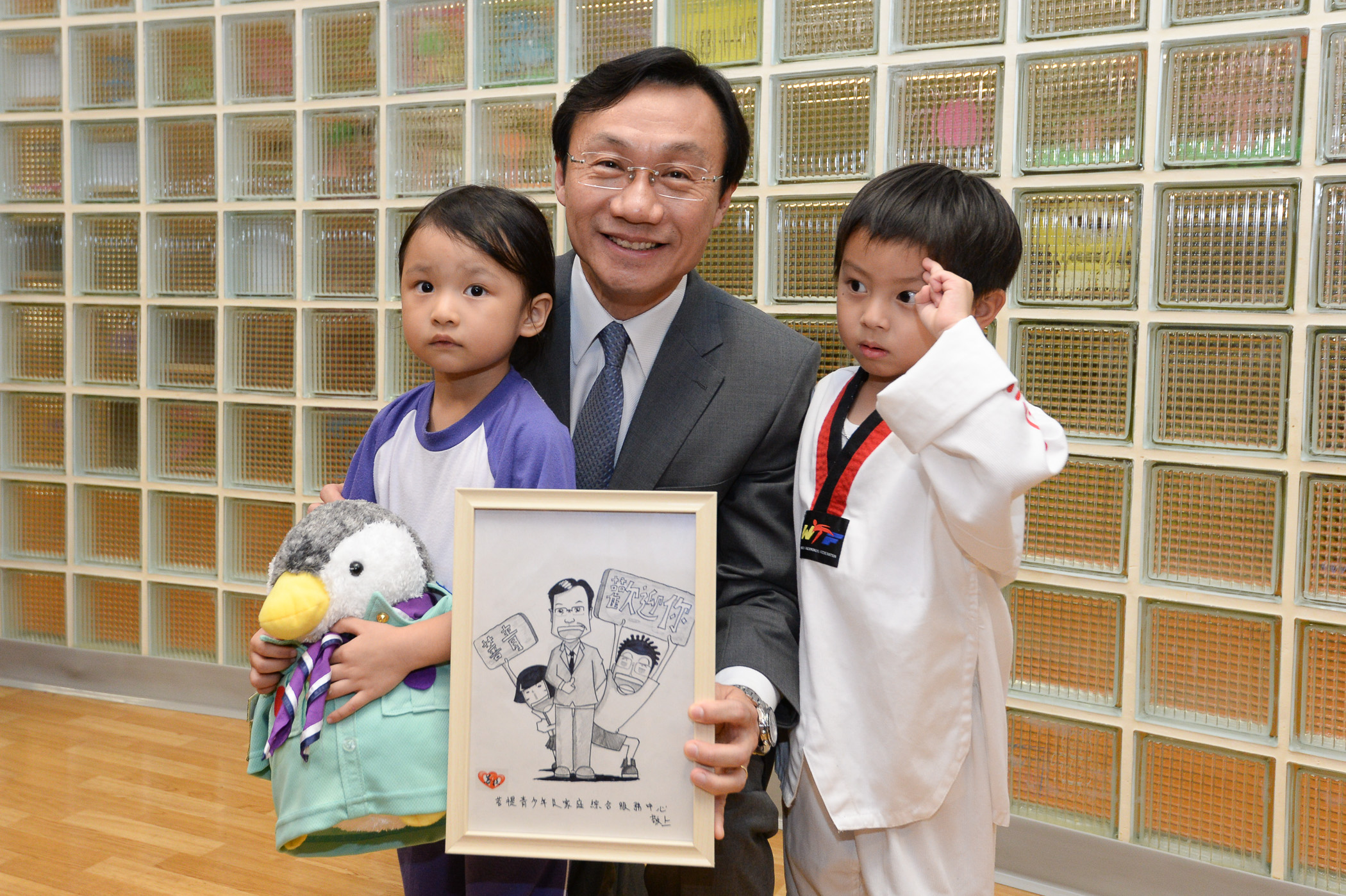 Em seguida, o Secretário e a sua comitiva deslocaram-se ao 8.° piso do Edifício para visitar o Complexo de Serviços para Jovens e Famílias Pou Tai, que actua na área do desenvolvimento da juventude, prevenção, assistência e aconselhamento, prestando portanto serviços que incluem actividades para o desenvolvimento da juventude, serviços de aconselhamento e de apoio aos jovens, educação para vida familiar e actividades para pais e filhos, serviços de aconselhamento e de apoio à família, serviços de apoio a escolas e actividades comunitárias de solidariedade. O referido Complexo disponibiliza serviços diversificados, adoptando o modelo de “one stop”, no sentido de não só ir ao encontro das necessidades dos jovens e das suas famílias, como também, estimular os jovens de modo a que estes prestem mais atenção à sociedade, participem nos assuntos sociais e desenvolvam o espírito de solidariedade e amor, em prol da promoção da harmonia na família e na sociedade. Durante a vista, houve crianças que ofereceram prendas ao Secretário com quem tiraram fotografias.