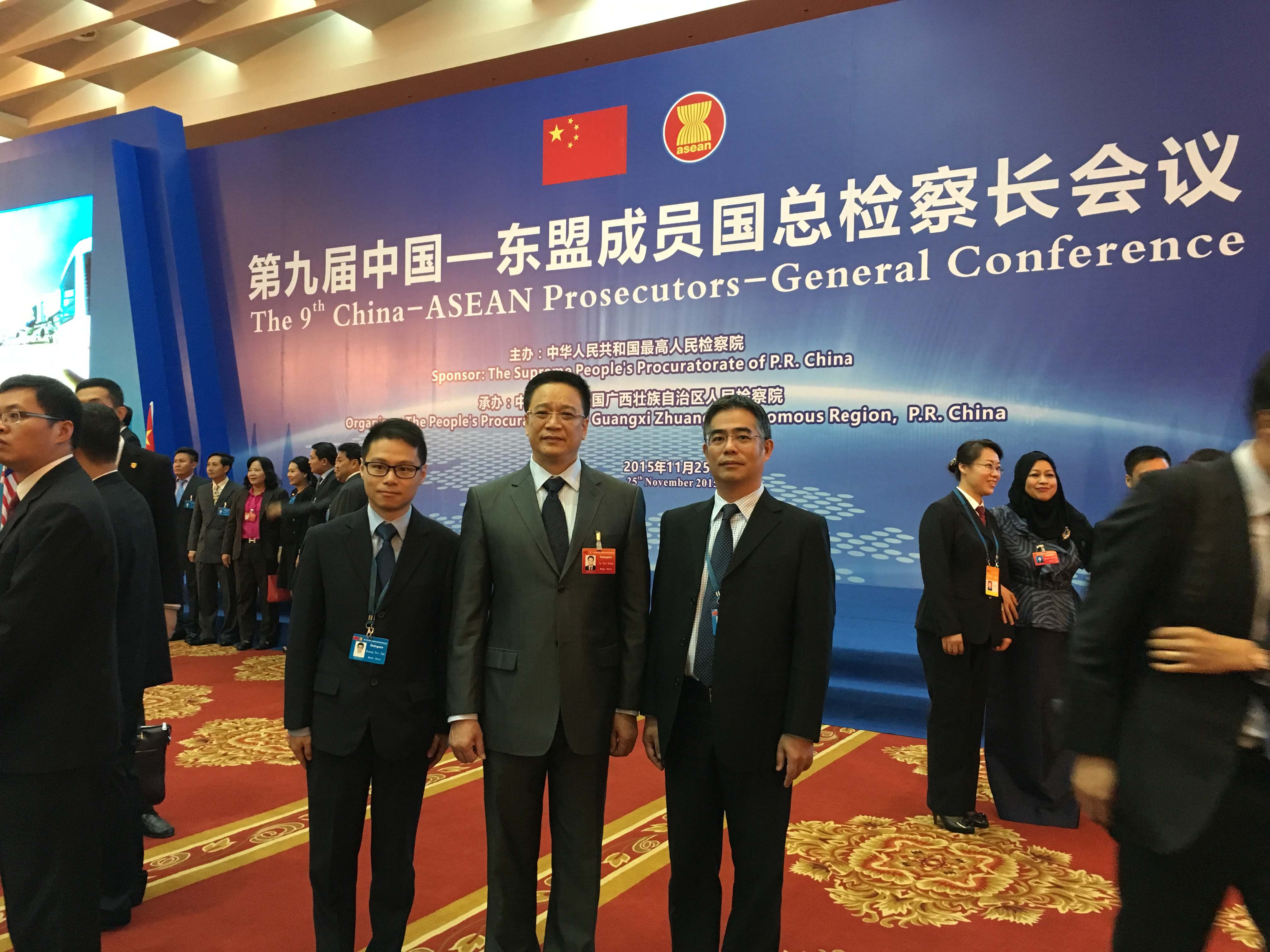 Nos dias 24 e 25 de Novembro de 2015, a delegação do Ministério Público da RAEM, chefiada pelo Procurador, Dr. Ip Son Sang participou na “9.ª Conferência dos Procuradores-Gerais da China e dos países da Associação de Nações do Sudeste Asiático (ASEAN)”, realizada na cidade Nanning de Guangxi. Os participantes são provenientes dos órgãos de procuradoria e respectivas autoridades, de Indonésia, Brunei, Camboja, Laos, Malásia, Myanmar, Filipinas, Singapura, Tailândia, Vietname, bem como do interior da China, da Região Administrativa Especial de Hong Kong e da Região Administrativa Especial de Macau.