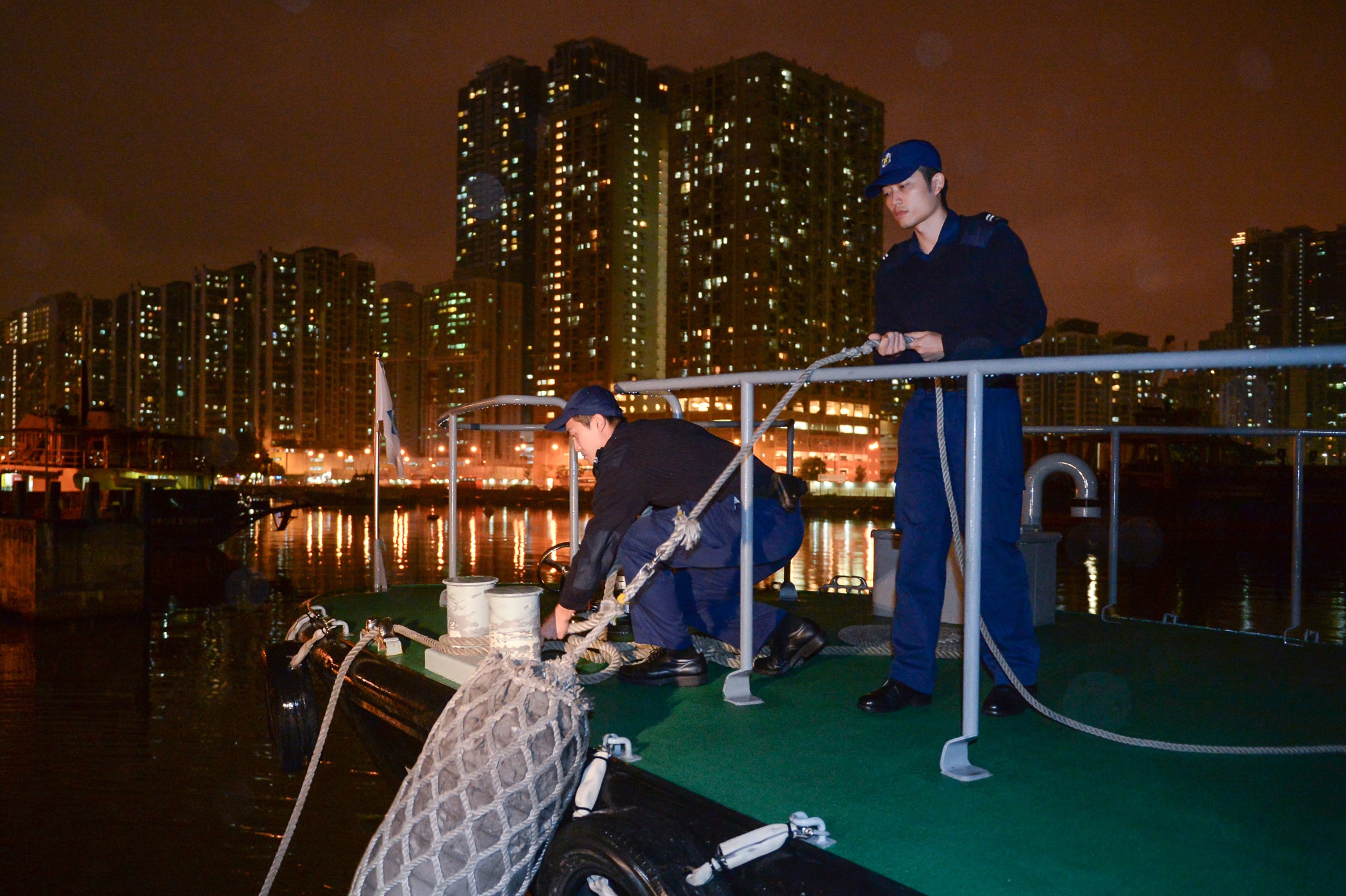 Na noite de hoje, nas instalações do Departamento de Inspecção Marítima dos S.A na Ilha Verde, teve lugar uma concentração do pessoal alfandegário, afecto ao patrulhamento marítimo. Durante a mesma o subdirector-geral dos Serviços de Alfândega, Sin Wun Kao apresentou os equipamentos do Centro de Comando. Posteriormente, o Chefe substituto desse Departamento, Leong Wa Kan, explicou ao pessoal as novas orientações relativas às áreas de serviço marítimo e as precauções a tomar durante o cumprimento da missão. De seguida, após a formatura de verificação, o pessoal alfandegário seguiu para os locais de serviço. Simultaneamente, o comandante da Flotilha de Meios Navais dirigiu-se, para fiscalização in loco, para a Zona A dos Novos Aterros Urbanos, do Terminal Marítimo de Pac On, na ilha da Taipa, e do Parque Industrial da Concórdia, na ilha de Coloane. Entretanto, estão concluídas três instalações temporárias de operações marítimas, as quais irão entrar em funcionamento conforme planeado, e as obras de melhoramentos também irão ser progressivamente iniciadas.