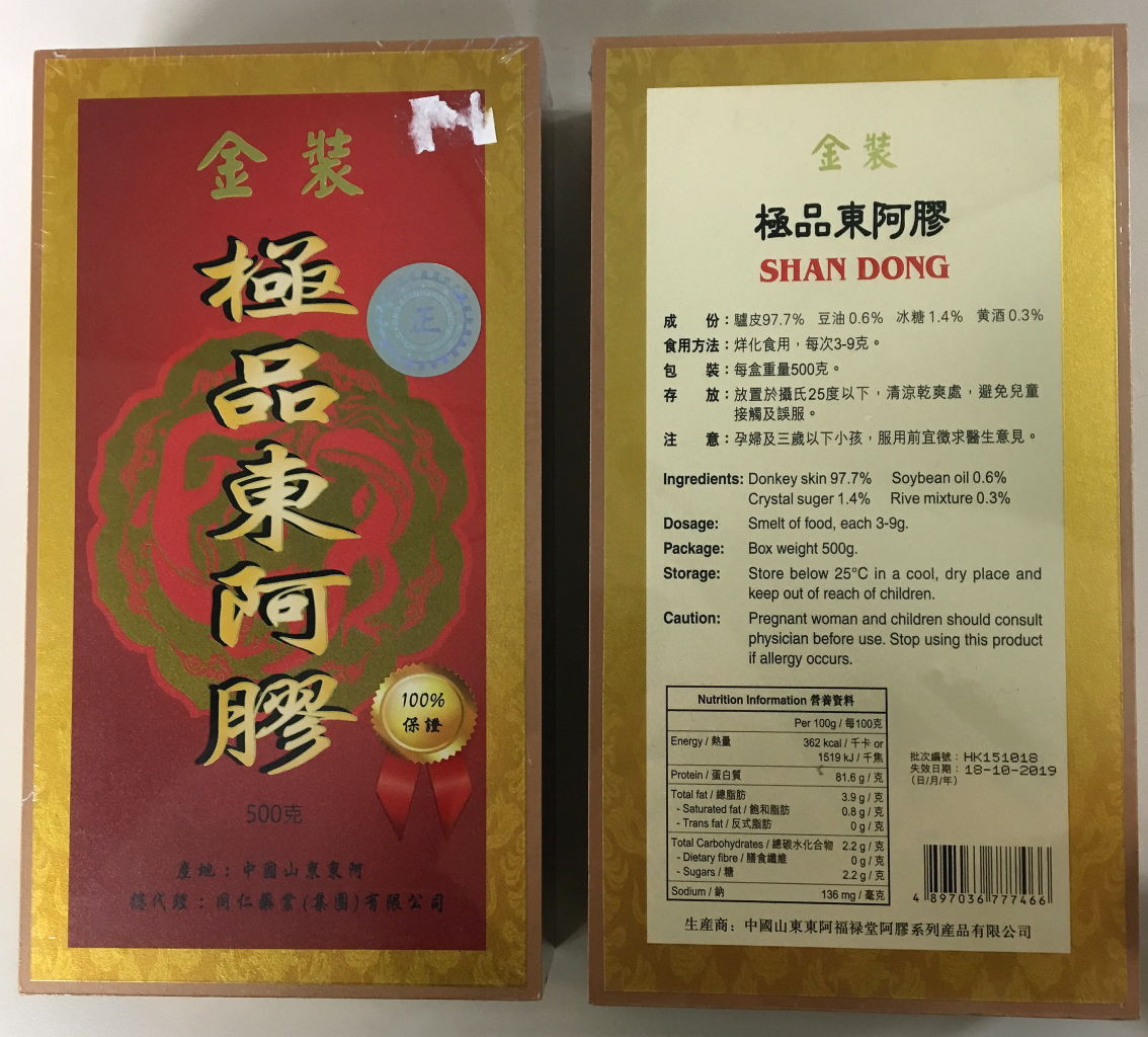 Ao procederem à vigilância de ingredientes medicinais chineses no mercado de Macau, os Serviços de Saúde detectaram que a substância “burro-hide gelatina” dos lotes indicados na tabela anexa contêm ingredientes de fonte de couro, razão pela qual os Serviços de Saúde procederam à selagem dos medicamentos em causa.