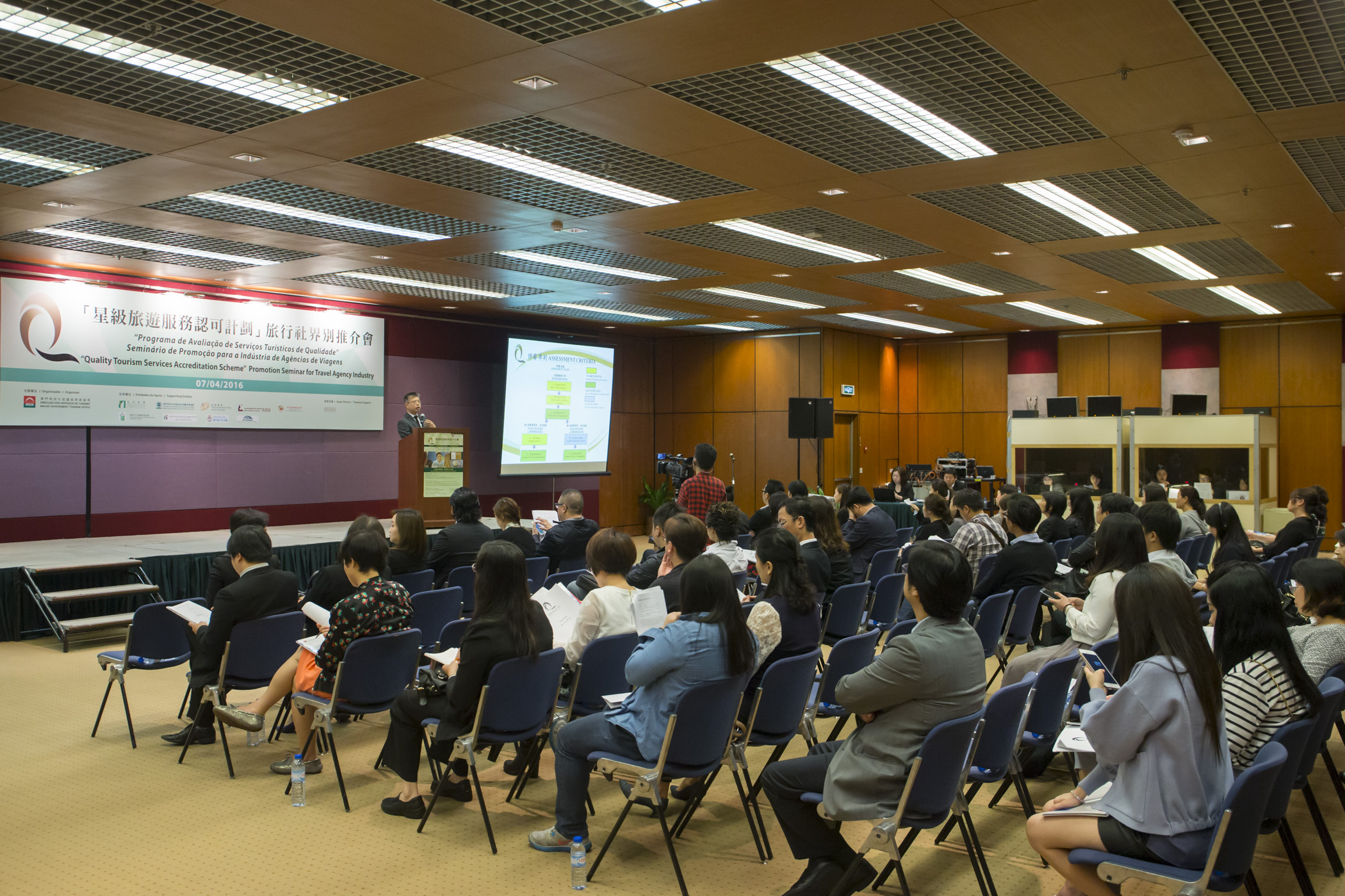 O seminário de promoção, decorrido no Centro de Actividades Turísticas, apresentou ao sector de agências de viagens os critérios de avaliação e formalidades para a inscrição. No seminário de promoção estiveram presentes o subdirector da DST, Cheng Wai Tong, o representante do Instituto para os Assuntos Cívicos e Municipais, Cham Iu Van, a representante do Instituto de Formação Turística, Dra. Connie Loi Kim Ieng, o director-assistente de Estudos de Mercado e Operações Subsidiárias da Agência de Garantia de Qualidade de Hong Kong, K. T. Ting, o presidente da direcção da Associação de Indústria Turística de Macau, Andy Wu, vice-presidente da Associação de Agências de Turismo de Macau, Tsui Wai Man, o vice-presidente da direcção da Associação de Indústria Turística de Macau, Wong Fai, a representante da Associação das Agências de Viagens de Macau, Lao Mei Kuan, o presidente da direcção da Associação das Pequenas e Médias Empresas de Restauração de Macau, Ieong Weng Seng, a presidente da Comissão de Fiscalização da Associação dos Hoteleiros de Macau, Noel Wong, e o vice-presidente da direcção da União das Associações dos Proprietários de Estabelecimentos de Restauração e Bebidas de Macau, Lo Kam Kuan, entre outros. A Agência de Garantia de Qualidade de Hong Kong, na qualidade de entidade prestadora de apoio técnico, apresentou na ocasião os critérios de avaliação do programa para o sector de agências de viagens.