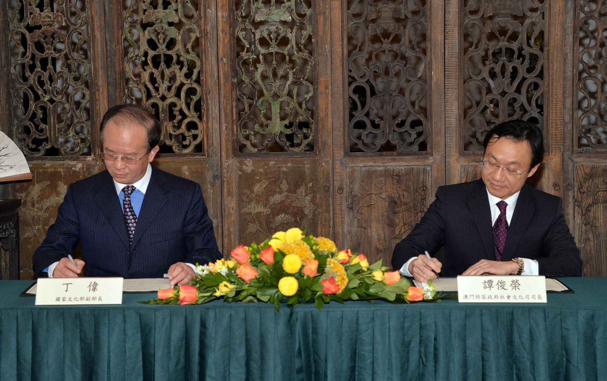 A fim de aprofundar ainda mais o intercâmbio e cooperação na área cultural entre o Interior da China e Macau, incentivar a integração cultural e promover um objectivo comum de identidade cultural, o Ministério da Cultura da RPC e a Secretaria para os Assuntos Sociais e Cultura do Governo da RAEM assinaram o “Plano de Execução de Intercâmbio Cultural e de Cooperação entre a China Continental e a RAEM 2016-2018”. Através da co-organização pelo Interior da China e pela RAEM de diversas actividades festivas e culturais, estudos e intercâmbio relativos ao património cultural intangível e à formação de profissionais na área cultural, o Plano permitirá que as actividades culturais de Macau sejam apresentadas no Interior da China e que a cultura chinesa se espalhe pelo mundo. O Plano de Execução e Cooperação foi assinado pelo Vice-Ministro da Cultura da RPC, Ding Wei e pelo Secretário para os Assuntos Sociais e Cultura da RAEM, Alexis Tam.