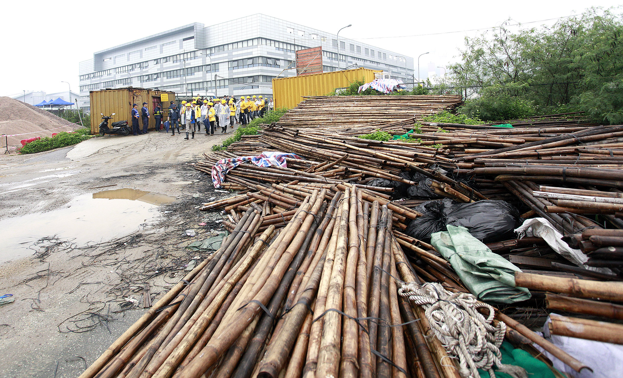 Os fiscais da DSSOPT verificaram nas acções quotidianas de fiscalização que o aludido terreno, com uma área de cerca de 86.000 m2, próximo da Avenida do Cais de Pac On e confrontado a Norte com a Travessa Dois do Cais de Pac On, foi ilegalmente ocupado, sendo nele construído várias construções ilegais de tapume metálico, cobertura metálica, estrutura metálica e betão. Além disso, o aludido terreno foi ainda utilizado para depósito de contentores, andaimes de bambu, máquinas de construção, materiais de construção e materiais diversos. Após a abertura do processo para acompanhamento do caso, os ocupantes ilegais desconhecidos foram notificados por meio do edital da instrução do processo, publicado em Setembro do ano passado, sobre a realização da audiência escrita e por meio do edital de notificação da decisão final do Governo, publicado em Fevereiro do corrente ano, os mesmos foram notificados para procederem à desocupação do terreno dentro do prazo fixado. Findo o prazo para a desocupação do terreno em princípios do corrente mês, os fiscais da DSSOPT verificaram que no terreno se encontrava ainda depositada uma grande quantidade de andaimes de bambu, veículos estacionados, sucata, contentores e materiais diversos, pelo que o Governo decidiu em proceder hoje à acção interdepartamental de despejo do terreno no sentido de reverter e vedar o terreno.