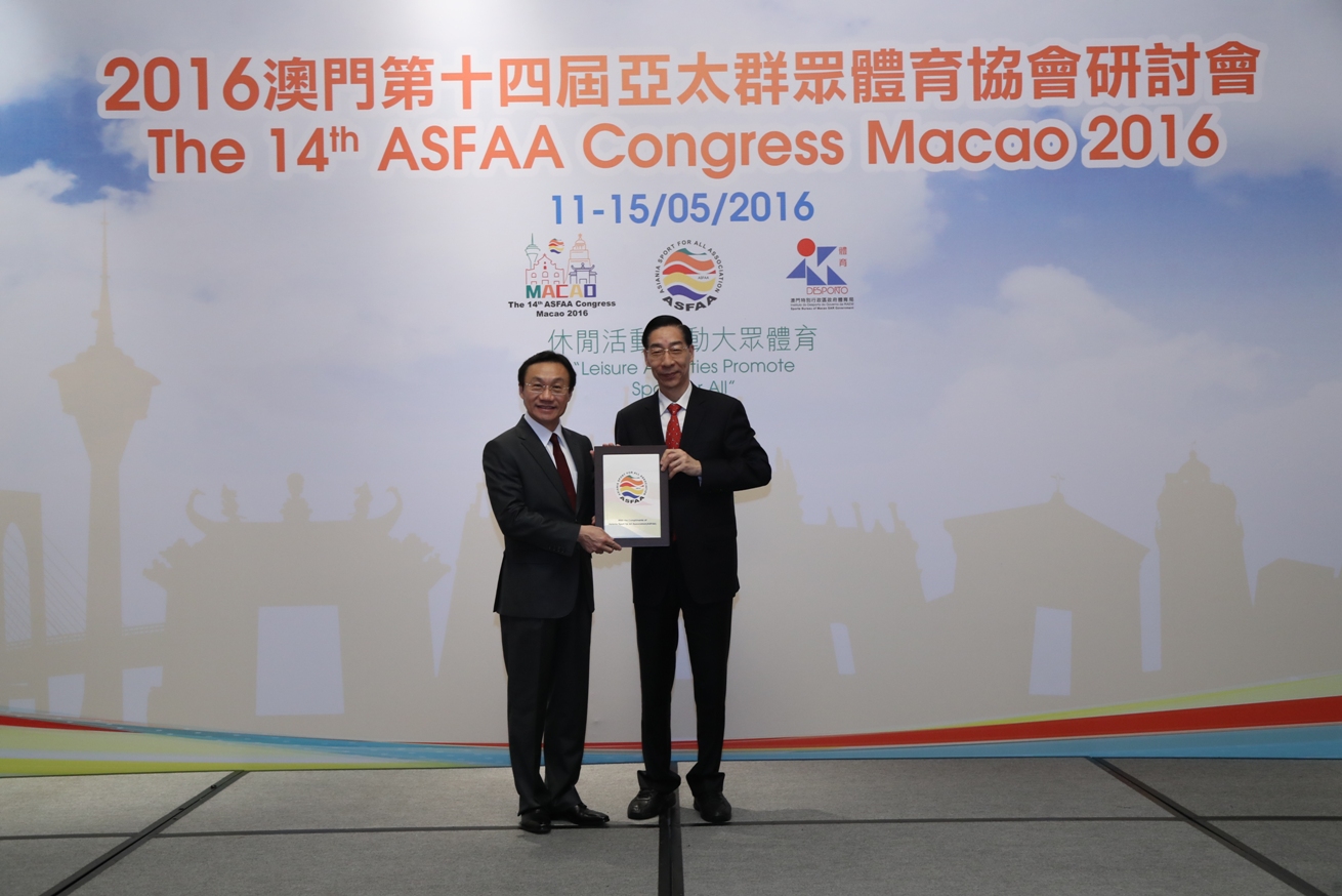 Sendo membro da ASFAA, o Instituto do Desporto tem participado activamente nas suas actividades e a organização do 14.º Congresso da ASFAA visa estreitar a ligação entre Macau e a comunidade internacional, promover a imagem de Macau como uma cidade turística saudável e intensificar o intercâmbio de experiências acumuladas entre os intervenientes promovendo o desenvolvimento futuro do Desporto para Todos em Macau.