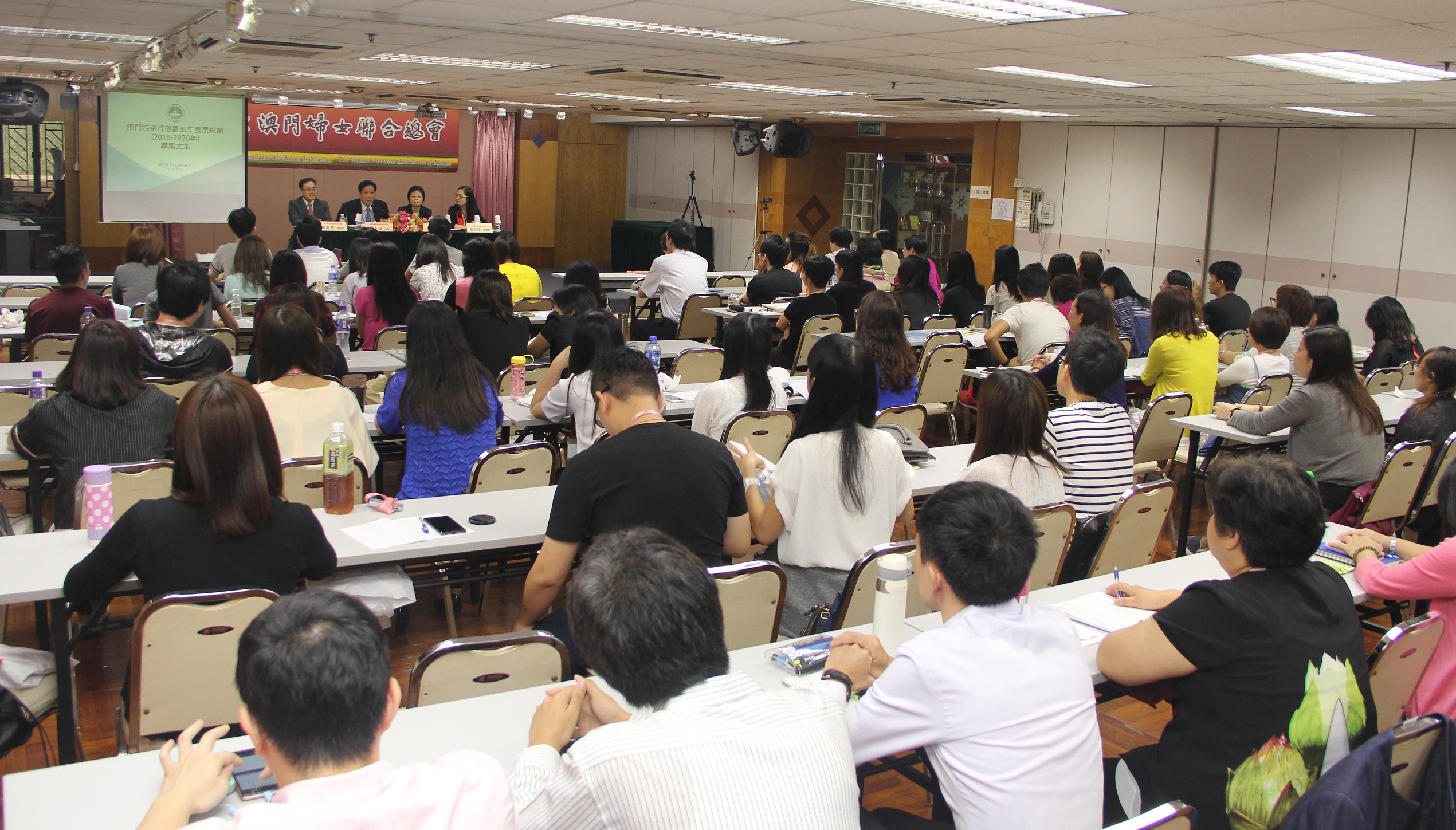 A presidente do Conselho Executivo da AGMM, Lam Un I, as vice-presidentes, Wong Man I e Wu Un Peng, as vice-presidentes do Conselho Executivo, Un Sio Leng e Yeung Suk Yin, a secretária-geral, Chong Ling Ling e, os membros do Conselho executivo e do Conselho fiscal, os trabalhadores das instituições subordinadas, ao todo, cerca de 90 representantes participaram no colóquio.