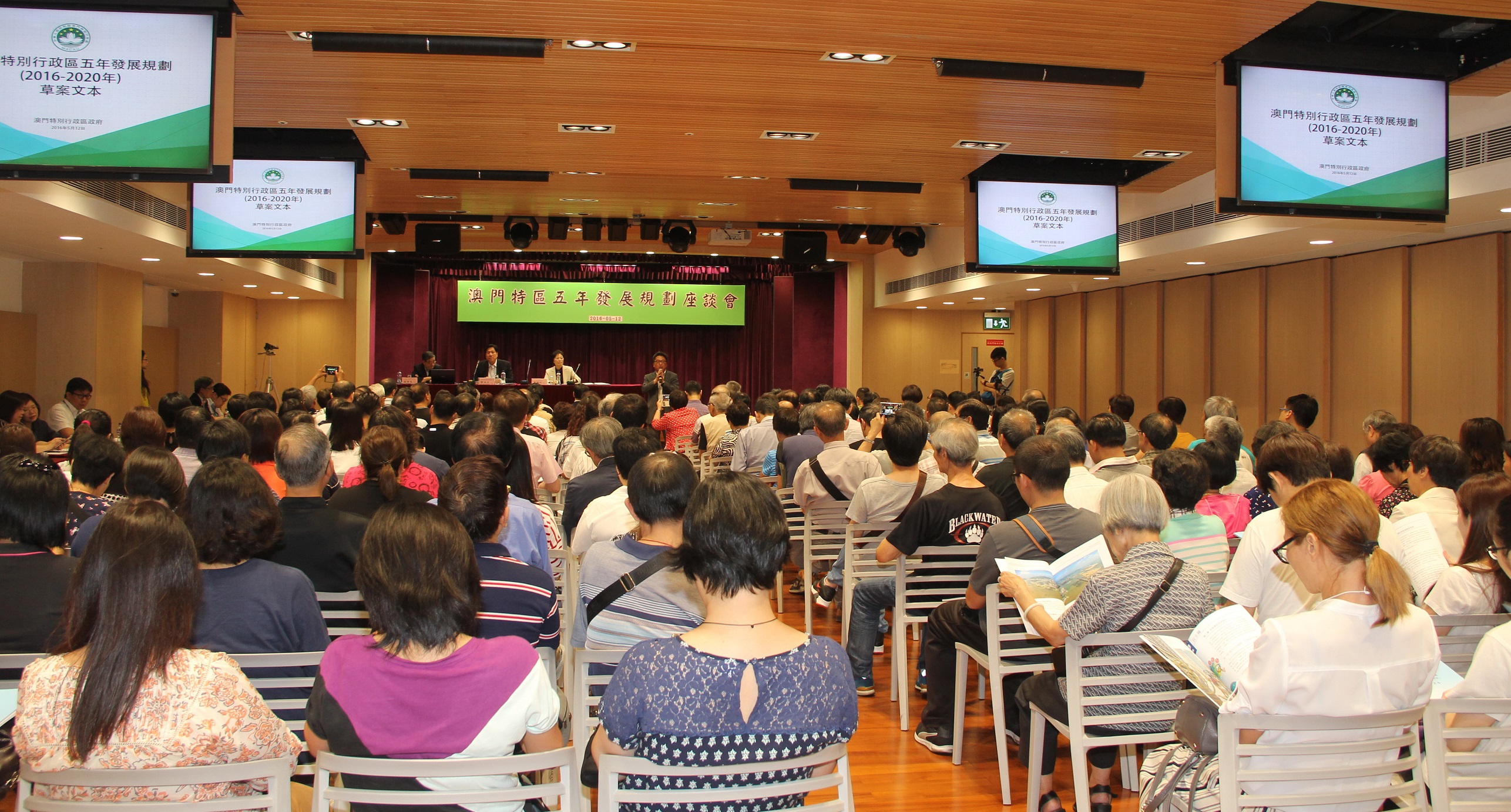 O Coordenador do Gabinete de Estudos das Políticas, Lao Pun Lap, a assessora do Gabinete do Chefe do Executivo, Lei Ngan Leng e o Coordenador-Adjunto do Gabinete de Estudos das Políticas, Ng Hoi Ian, participaram no colóquio sobre o projecto do Plano Quinquenal de Desenvolvimento da RAEM (2016-2020), a convite da Federação das Associações dos Operários de Macau (FAOM), entidade organizadora, que teve lugar no fim da tarde do dia 12 de Maio, no Edifício Federação das Associações dos Operários, durante a qual foi feita uma apresentação do conteúdo do projecto e um diálogo interactivo com os presentes.