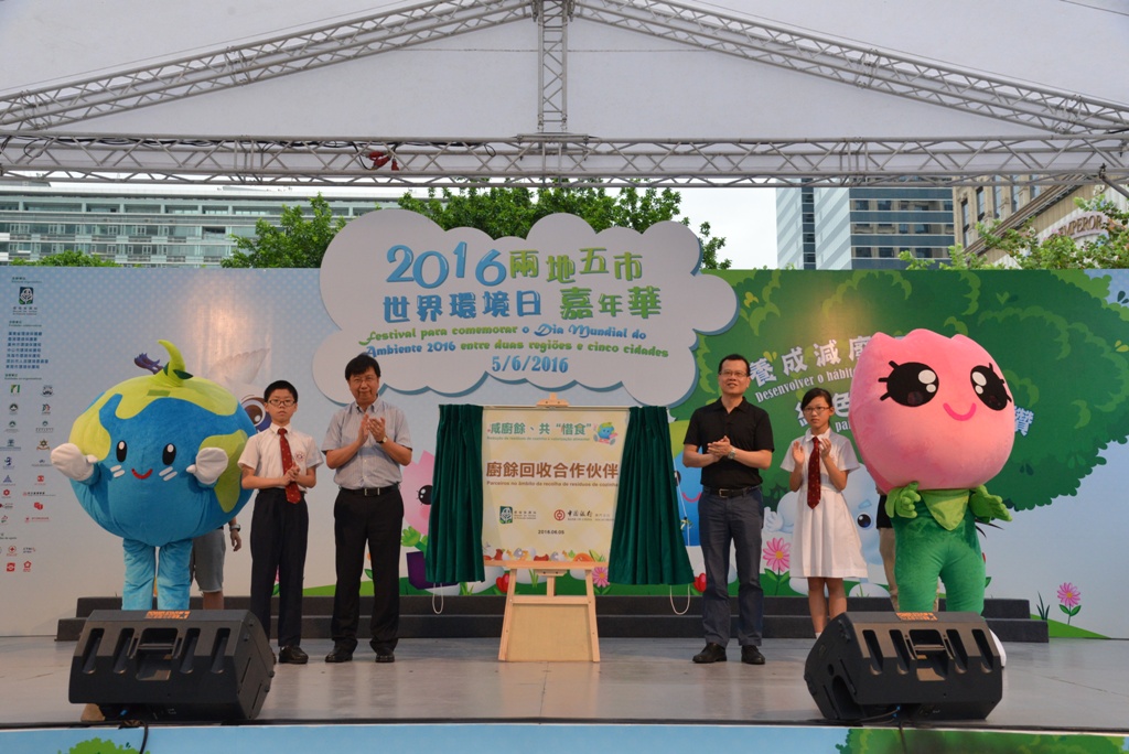 O “Festival para comemorar o Dia Mundial do Ambiente 2016 entre duas regiões e cinco cidades”, organizado pela Direcção dos Serviços de Protecção Ambiental (DSPA), foi realizado hoje (5 de Junho) à tarde na Praça da Amizade. O evento é subordinado ao tema “Desenvolver o hábito da redução de resíduos para uma vida verde produtiva”, com vista a divulgar a mensagem de protecção ambiental através de actividades de palco, stands com jogos, workshops de protecção ambiental e posto de recolha do Programa de Pontos “Verdes”, entre outras actividades.