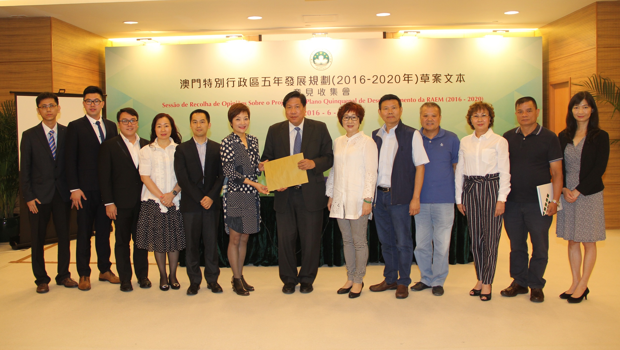 Os presentes reconheceram no geral e expressaram apoio ao primeiro Plano Quinquenal elaborado pelo Governo da RAEM, tendo apresentado opiniões e sugestões sobre o planeamento urbanístico, o Direito, o desenvolvimento da indústria criativa e cultural, entre outas matérias. Relativamente ao texto do documento, houve opiniões para a atenção do estatuto constitucional do documento, salientando da necessidade de reforço à execução e concretização do mesmo, ao ser elaborada a versão autêntica deverá ter em conta o devido cálculo da dimensão populacional, a recolha de dados e os trabalhos de gestão, referindo ainda que o conteúdo do documento sobre as questões da educação, da saúde, dos recursos humanos, dos idosos, entre outras, terá de ser reforçado. As opiniões relativas ao planeamento urbano incluem, a elaboração no mais breve possível o planeamento urbano geral, a desactualizada legislação que pode interferir no reordenamento dos bairros antigos, a renovação urbana deve ter em atenção reordenamento dos edifícios antigos do bairro Iao Hon, a reabilitação dos bairros antigos do Porto Interior, entre outras. Sobre o Direito, as opiniões apontam que o Governo deve elaborar um calendário para rever e melhorar os diplomas e regulamentos e, desenvolver as vantagens de Macau nas áreas judiciais e de arbitragem enquanto plataforma entre a China e os Países de Língua Portuguesa. Relativamente ao desenvolvimento da indústria cultural e criativa, as opiniões foram no sentido de um maior apoio às empresas criativas de jovens empresários, promover o desenvolvimento da indústria através de um reforço na reserva de quadros qualificados e serviços inovadores no sector financeiro inovador. Houve ainda opiniões que apoiam o lançamento de novas políticas gerais para o sector imobiliário, fomentar a construção de uma cidade ideal para habitação, promover o desenvolvimento saudável do sector imobiliário, reforçar a educação moral, incentivar os trabalhadores da Função Pública para um auto-aperfeiçoamento, para assim elevar as capacidades governativas.