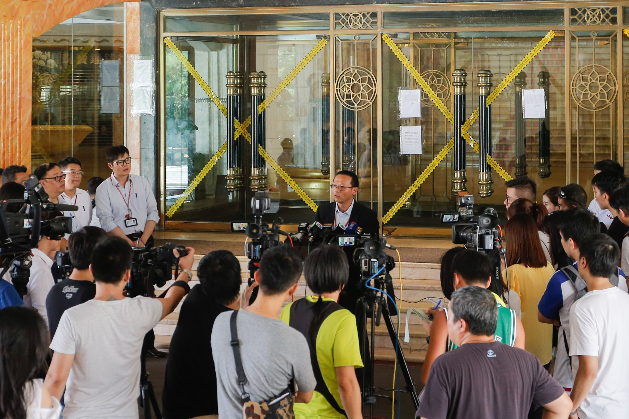 A Direcção dos Serviços de Turismo (DST) deslocou-se hoje (dia 23) ao Hotel Palácio Imperial Beijing de Macau para proceder ao encerramento do estabelecimento, afixando o mandado de notificação em todas as entradas e saídas do hotel, pelo período de seis meses. O encerramento decorreu sem sobressaltos.