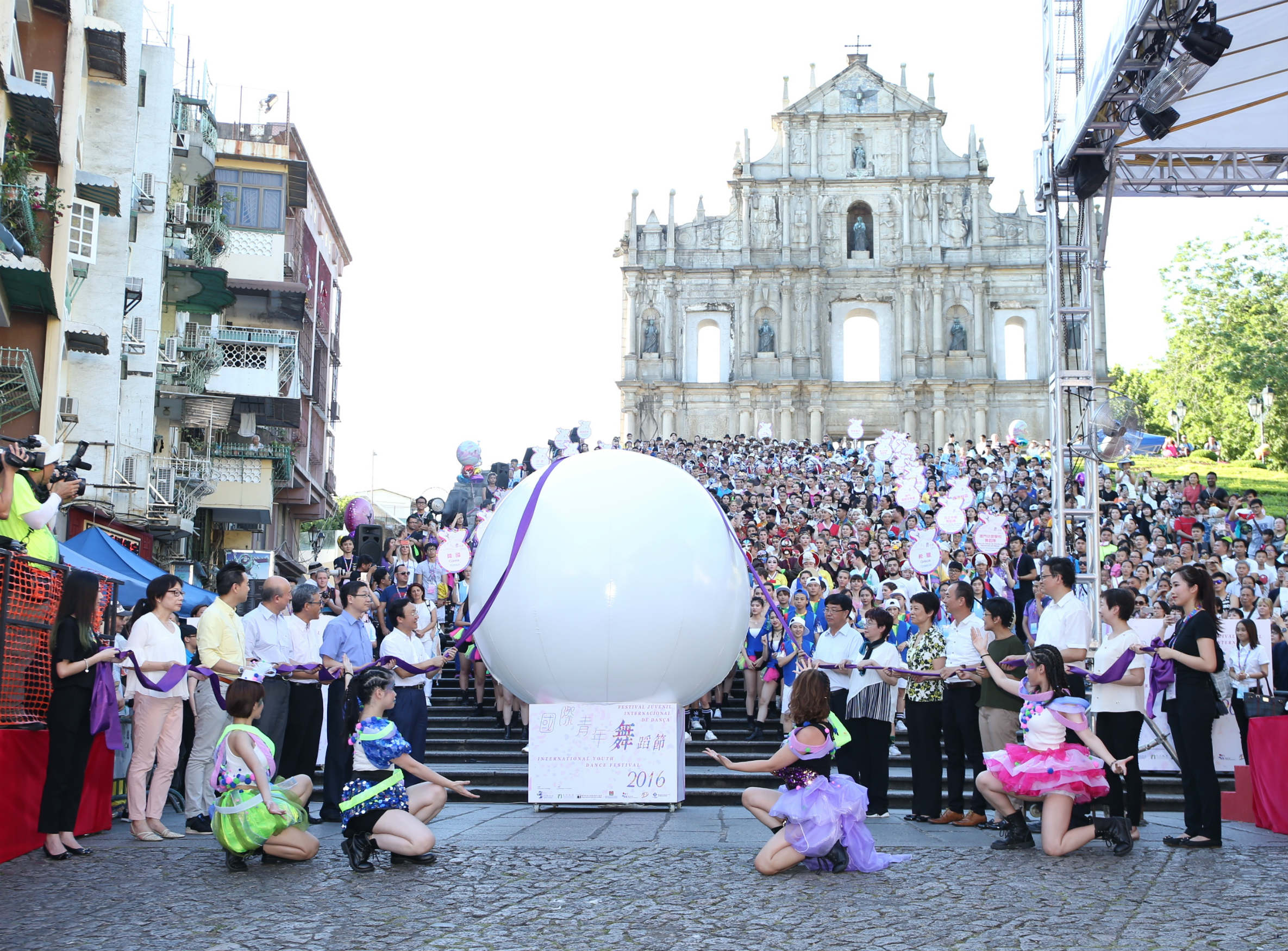A cerimónia de inauguração do “Festival Juvenil Internacional de Dança 2016”, organizado pela Direcção dos Serviços de Educação e Juventude (DSEJ), em colaboração com o Instituto para os Assuntos Cívicos e Municipais (IACM), Instituto Cultural (IC), Direcção dos Serviços de Turismo (DST), Instituto do Desporto (ID), Instituto de Formação Turística e o Fórum de Educação da Ásia-Pequim, teve lugar no dia 24 de Julho, pelas 17:30, nas Ruínas de São Paulo, e contou com cerca de 600 dançarinos jovens provenientes de Macau e dos outros países e regiões juntos nas Ruínas de São Paulo. O Festival Juvenil Internacional de Dança teve início com a cerimónia de inauguração, presidida pelo Senhor Secretário para os Assuntos Sociais e Cultura da RAEM, Alexis, Tam Chon Weng, o subdirector do Gabinete de Ligação do Governo Popular Central na RAEM, Sun Da, o comissário-Adjunto do Gabinete do Comissariado do Ministério dos Negócios Estrangeiros da República Popular da China na RAEM, Cai Si Ping, o chefe do Gabinete do Secretário para os Assuntos Sociais e Cultura da RAEM, Ip Peng Kin, a directora da DSEJ, Leong Lai, a Chefe do Departamento de Cultura e Educação do Gabinete de Ligação do Governo Popular Central na RAEM, Xu Ting, o secretário-Geral do Fórum de Educação da Ásia-Pequim, Yao Wang, o director do IC, Ung Vai Meng, a directora da DST, Maria Helena de Senna Fernandes, o subdirector do ID, Lau Cho Un, os subdirectores da DSEJ, Lou Pak Sang e Kuok Sio Lai e a chefe de Gabinete do Cidadão do IACM, Kou Pui San.