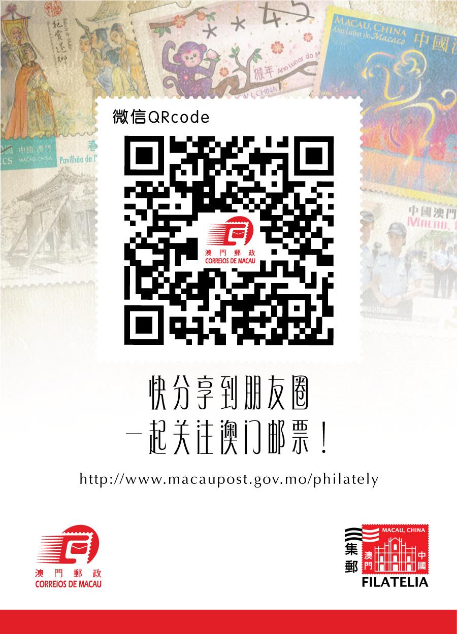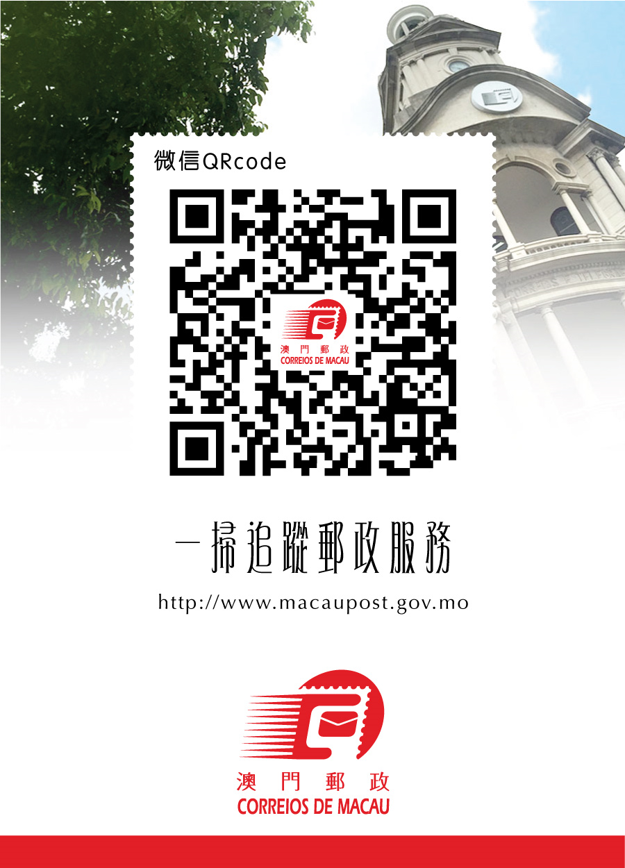 Com a conta “Correios de Macau”, é possível receber informações, como notas de imprensa, anúncios de feriados, informações sobre serviços postais e estações postais; com a conta “Filatelia de Macau”, receber informações sobre emissões filatélicas, carimbos comemorativos, exposições filatélicas e outras actividades, além de consultas à localização, horário de atendimento e feriados da loja de filatelia e das estações postais da DSC. Os interessados podem pesquisar as referidas contas no WeChat, ou fazer a leitura dos códigos QR abaixo indicados, e premir “Seguir”.