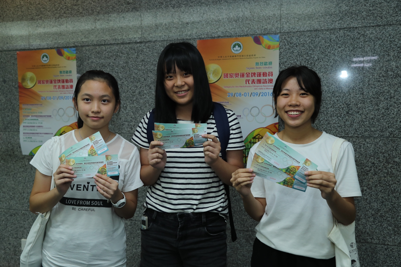A distribuição gratuita dos bilhetes para o “Intercâmbio Desportivo e Recreativo entre os Atletas Olímpicos Nacionais de Elite e os Jovens de Macau”, terá lugar no dia 26 de Agosto, a partir das 10:00h, no Pavilhão Polidesportivo Tap Seac. Os portadores de documento de identificação válido e emitido pela entidade competente da RAEM poderão adquirir no máximo de 2 bilhetes. Não havará marcação de lugares nos ingressos e de acordo com a orderm de distribuição do bilhetes aos interressados.