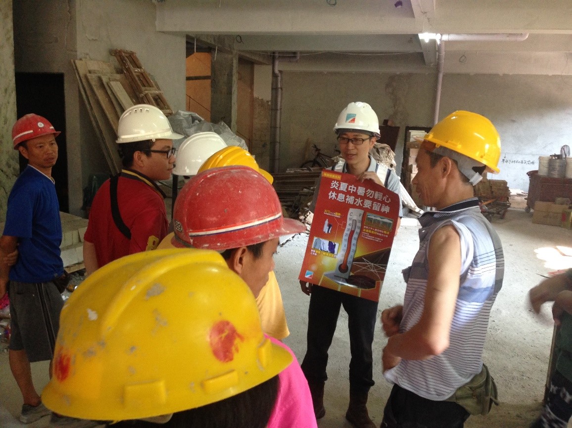 Nesta altura o clima fica bastante quente e húmido, sendo que os indivíduos que trabalham com exposição prolongada ao sol em recintos abertos, como por exemplo, os trabalhadores da construção civil, podem facilmente sofrer um golpe de calor (insolação) durante o trabalho. Para alertar o sector da construção para os perigos de golpe de calor, a Direcção dos Serviços para os Assuntos Laborais (DSAL), entre os meses de Junho e Agosto, enviou pessoal a cerca de 35 estaleiros para a realização de palestras, chamando a atenção do sector da construção para reforçar as medidas para eliminar ou reduzir os riscos de ocorrência de golpe de calor dos trabalhadores durante o trabalho nos estaleiros. Estas palestras contaram com cerca de 2 000 participantes. Durante as palestras, o pessoal da DSAL apresentou aos trabalhadores os sintomas do golpe de calor, as formas de tratamento e as medidas de prevenção, tendo também realizado vistas in loco para fiscalizar se os estaleiros estavam ou não equipados com bebedouros e locais para descanso dos trabalhadores. Foram ainda prestadas recomendações aos empreiteiros para melhoramento, e os responsáveis dos estaleiros e os encarregados de segurança afixaram cartazes de divulgação em locais visíveis, para alertar os trabalhadores a tomar atenção para prevenir golpes de calor.