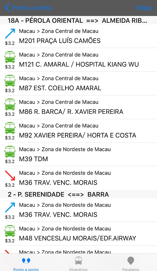Aquele que pretende praticar uma deslocação amiga do ambiente através do autocarro, mas que desconhece as paragens de autocarro e ao mesmo tempo não tem informação de qual carreira é que podem levá-lo ao destino? Ora bem, esta acção poderá ser resolvida através da nova versão 2.3 do “Macau GeoGuide” em que a aplicação irá listar os itinerários com opções mais apropriadas de acordo com a sua localização posicionada.