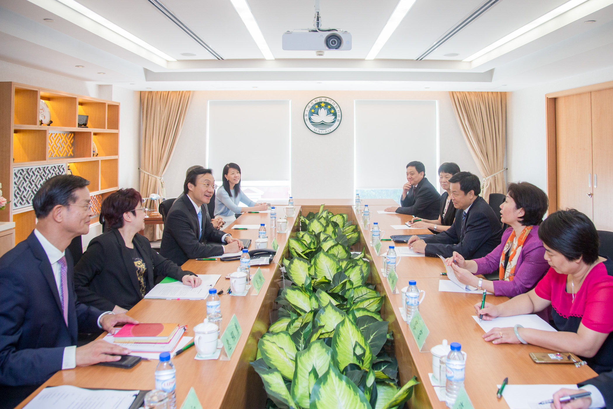 Estiveram presentes no encontro o Director do Gabinete para os Assuntos de Hong Kong, Macau e Taiwan do Ministério da Educação, Liu Jin, o Director-Geral do Departamento do Planeamento e Administração Linguísticos do Ministério da Educação, Yao Xishuang, a Chefe do Departamento de Cultura e Educação do Gabinete de Ligação do Governo Central na RAEM, Xu Ting, a Directora dos Serviços de Educação e Juventude, Leong Lai, o Coordenador do Gabinete de Apoio ao Ensino Superior, Sou Chio Fai, entre outros.