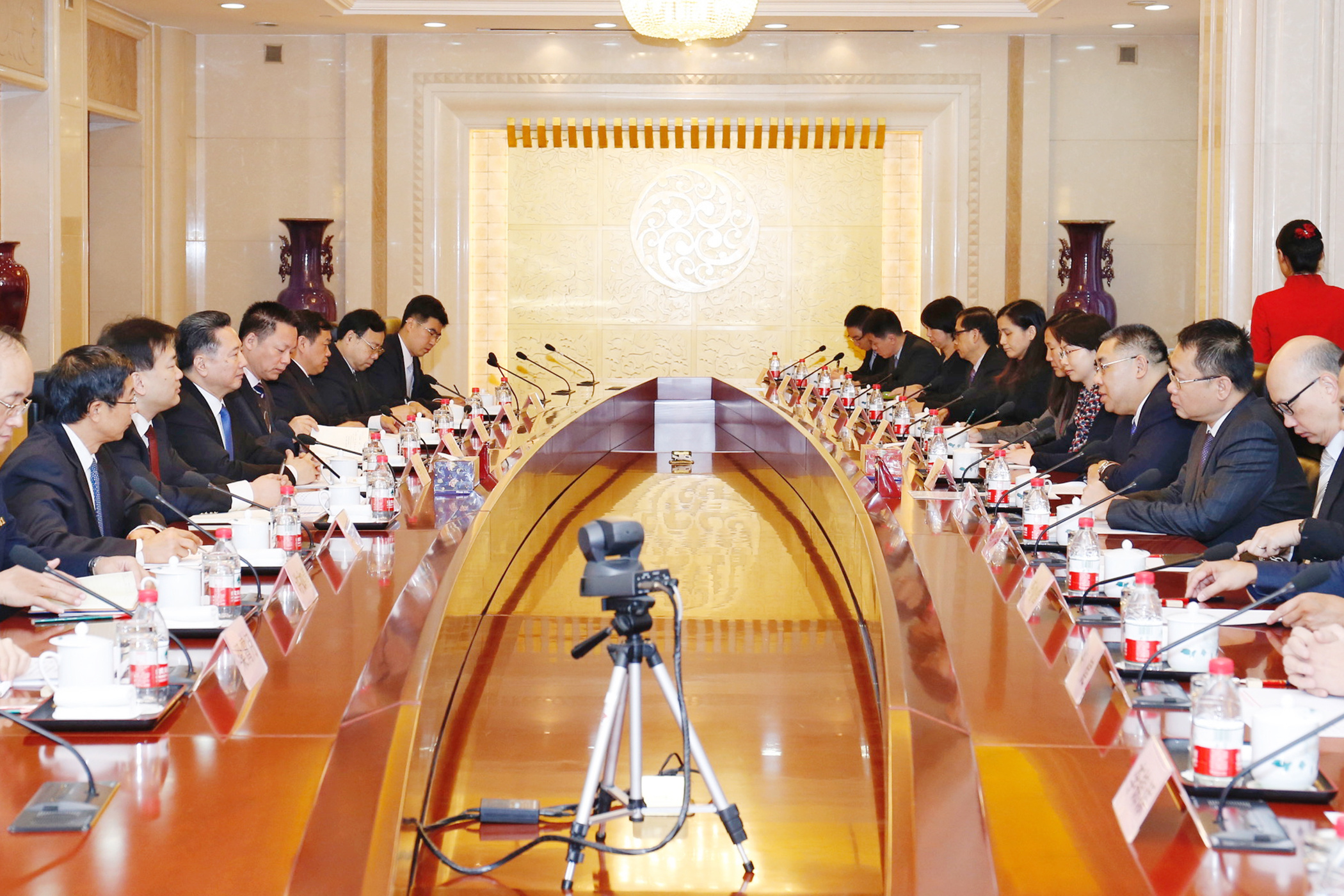 Estiveram presentes no encontro, a chefe de Gabinete do Chefe do Executivo O Lam, o director do Gabinete de Comunicação Social Victor Chan, a chefe da Delegação da RAEM em Pequim, Hong Wai, o coordenador do Gabinete de Protocolo, Relações Públicas e Assuntos Exteriores, Fung Sio Weng, a directora dos Serviços Marítimos e de Água, Wong Soi Man, o director dos Serviços de Solos, Obras Públicas e Transportes, Li Canfeng, o assessor do Gabinete do Chefe do Executivo, Kou Chin Pang e o consultor principal do Gabinete de Estudo das Políticas do Governo da Região Administrativa Especial de Macau, Mi Jian, e entre outros.