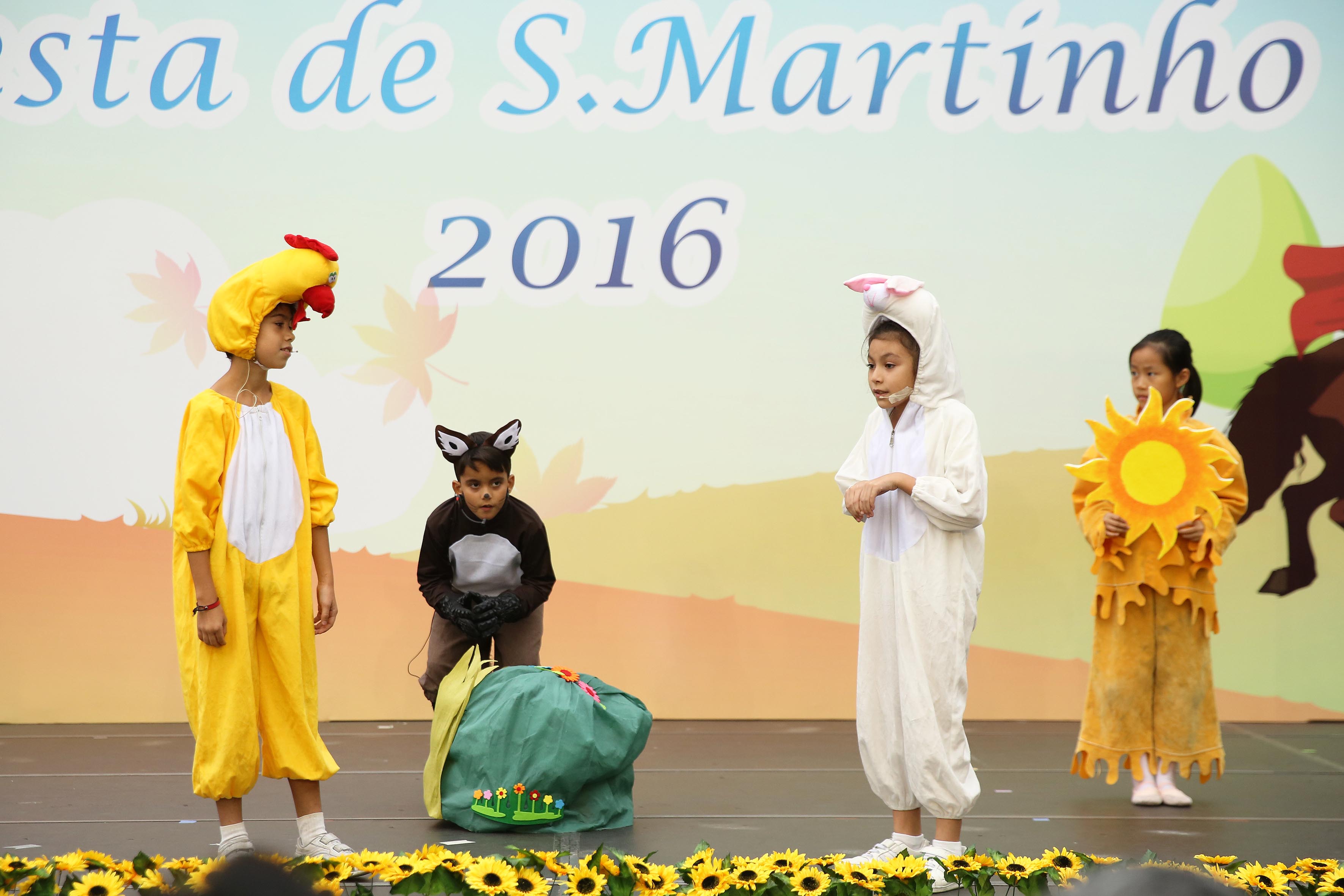 A cerimónia de abertura da “Festa de S. Martinho 2016” foi presidida por Alexis, Tam Chon Weng, Secretário para os Assuntos Sociais e Cultura, Ip Peng Kin, chefe do Gabinete do Secretário para os Assuntos Sociais e Cultura, Leong Lai, directora da DSEJ, Wai Cheng Iong, assessor do Gabinete do Secretário para os Assuntos Sociais e Cultura, Lou Pak Sang e Kuok Sio Lai, subdirectores da DSEJ, Leong Iao Cheng, director da Escola Secundária Luso-Chinesa Luís Gonzaga Gomes, Felizbina Gomes, directora da Escola Primária Luso-Chinesa da Flora, Manuel Machado, presidente da direcção da Escola Portuguesa de Macau, Lola do Rosário, directora do Jardim de Infância D. José da Costa Nunes, e ainda Chan Iao Hong, vice-presidente da Associação de Pais e Encarregados de Educação da Escola Luso-Chinesa da Flora. O evento contou com várias actividades, destacando-se as barraquinhas com decorações tradicionais tipicamente portuguesas, que não só disponibilizaram jogos para divertimento e comidas portuguesas e chinesas, como também proporcionaram vários espectáculos, tudo organizado e realizado, em conjunto, pelos professores, encarregados de educação e alunos, das várias unidades que colaboraram. O Secretário Alexis, Tam Chon Weng e outros convidados visitaram as barraquinhas típicas de jogos, tendo dialogado com os alunos, que conviveram num ambiente alegre.