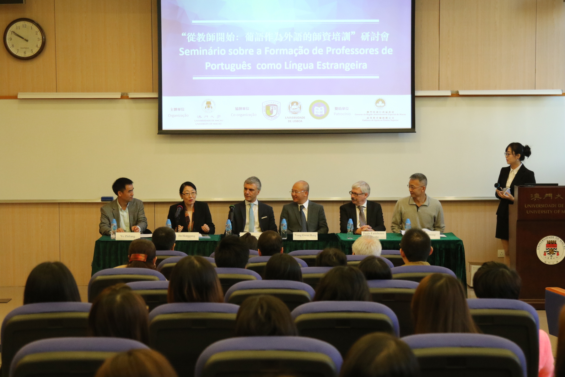 O seminário ainda contou com a presença do Dr Tsang Gwun Hung, subdiretor do Gabinete de Apoio ao Ensino Superior, da Professora Ana Paula Cleto, delegada da Fundação Oriente, do Dr. Wong Chang Chi, diretor substituto do Centro de Difusão de Línguas da DSEJ, do Professor Carlos André, Diretor do Centro Pedagógico e Científico da Língua Portuguesa do IPM, da Professora Antónia Espadinha, vice-reitora da Universidade São José e do Dr. Manuel Machado, Diretor da Escola Portuguesa.