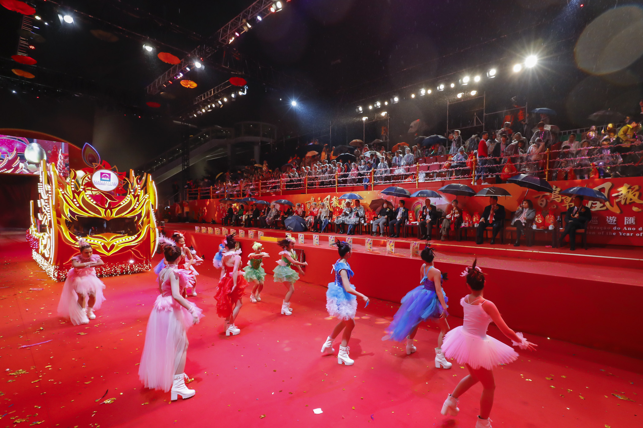 O Secretário para os Assuntos Sociais e Cultura (SASC), Alexis Tam, o chefe do Gabinete do SASC, Ip Peng Kin, a directora da Direcção dos Serviços do Turismo (DST), Maria Helena de Senna Fernandes, o presidente do Conselho de Administração do Instituto para os Assuntos Cívicos e Municipais, José Tavares, o presidente do Instituto Cultural, Ung Vai Meng, o chefe do Departamento de Administração de Instalações Desportivas do Instituto do Desporto, Ho Wa, e o director do Centro de Intercâmbio de Turismo da Ásia em Hong Kong da Administração do Turismo da China, Li Jianping, entre outros convidados, presidiram à cerimónia de arranque da Parada de Celebração do Ano do Galo, realizada às 20h00, em frente ao Centro de Ciência de Macau, dando assim o início a este evento do Ano Novo Lunar. A ocasião foi animada pelos apresentadores de programas de televisão de Hong Kong, Bob Lam e Sarika Choy, a par actuações de dança de fénix e do grupo de Hong Kong, C AllStar. Em seguida, os 14 carros alegóricos, acompanhados de 688 animadores artísticos partiram do ponto de arranque, caminhando em conjunto com o público para um ano mais brilhante.