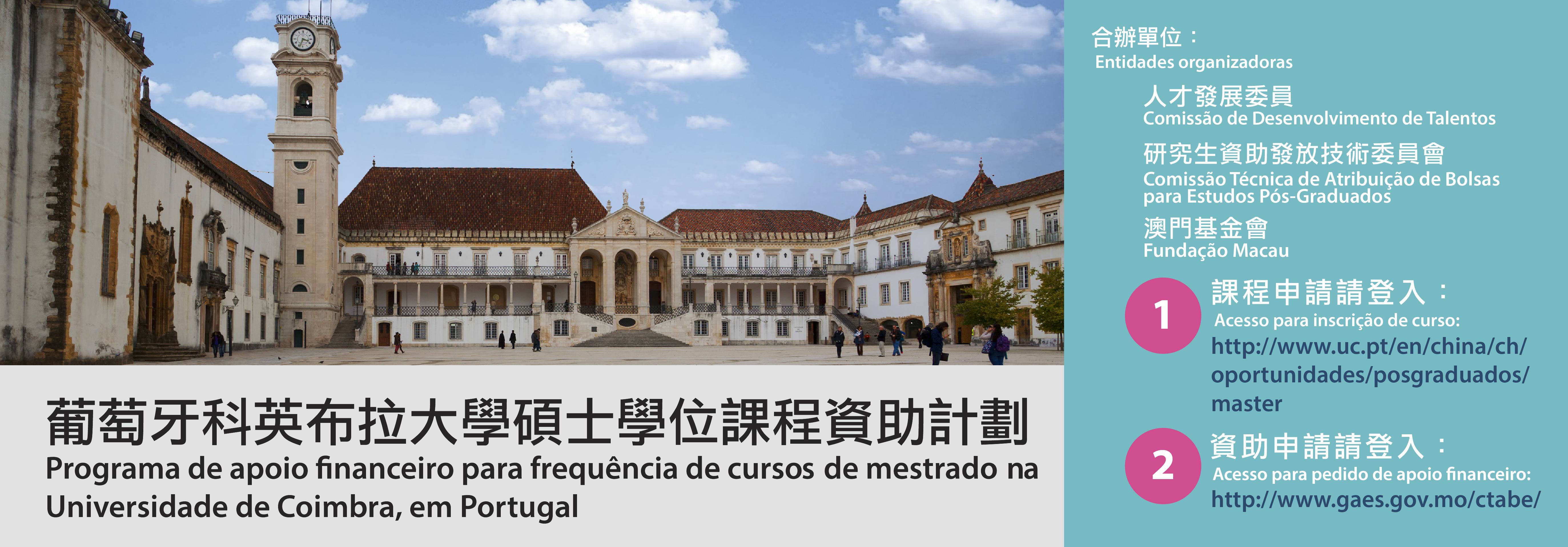 Os objectivos do Plano de Coimbra são formar quadros qualificados bilingues Chinês-Português com certo grau de capacidades profissionais e atribuir bolsas de estudo aos residentes de Macau na deslocação à Universidade de Coimbra, Portugal, e frequência de cursos de mestrado, entre os quais os estudantes das áreas de educação, direito, medicina e indústrias culturais e criativas têm prioridade nas bolsas com um limite máximo de três vagas. Pode-se fazer a inscrição no site da Comissão Técnica de Atribuição de Bolsas para Estudos Pós-Graduados https://www.gaes.gov.mo/ctabe/.