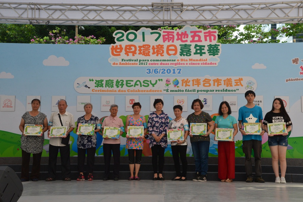 Além disso, o recinto do “Festival para comemorar o Dia Mundial do Ambiente 2017 entre duas regiões e cinco cidades” dispõe de tendas com jogos para pais e filhos, Workshops ambientais e exibição informática sobre a protecção ambiental, entre outros, para transmitir a mensagem de “valorizar os alimentos” e “recolher selectivamente os materiais recicláveis”. No recinto, também se premeiam os trabalhadores da linha de frente, afectos ao “Programa de Pontos Verdes - Efectuar a separação de resíduos pode ser divertido”, que tiveram um desempenho excelente durante o ano transacto. Também se agradece às escolas-piloto pelos apoios dados neste sentido.